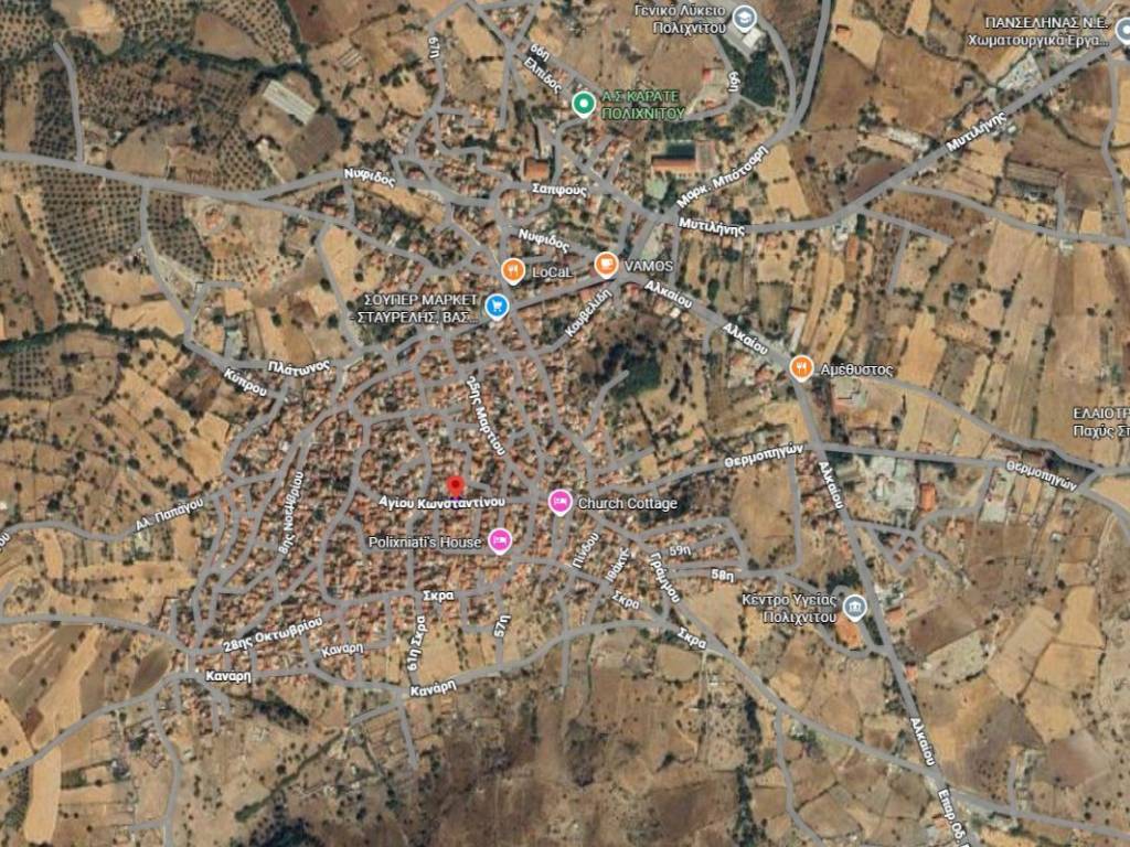 Οικόπεδο συνολικού εμβαδού 133,40τ.μ. το οποίο περιλαμβάνει ερειπωμένα ισόγεια κτίσματα επιφάνειας 110τ.μ., εντός σχεδίου, επίπεδο, άρτιο, οικοδομήσιμο, με συντελεστή κάλυψης 50%, συντελεστή δόμησης 0,5 και πρόσωπο οικοπέδου 11μ. Το οικόπεδο βρίσκεται στον Παραδοσιακό Οικισμό Πολιχνίτο στην Λέσβο, επί της Οδού Σκρά, 50μ. από την Οδό Αγίου Κωνσταντίνου, 100μ. από την Οδό 25ης Μαρτίου και 600μ. από την Οδό Αλκαίου. Ώρες Λειτουργίας Γραφείου Maconstruction Α.Ε. Δευτέρα έως Παρασκευή │09:00π.μ. έως 17:00μ.μ.