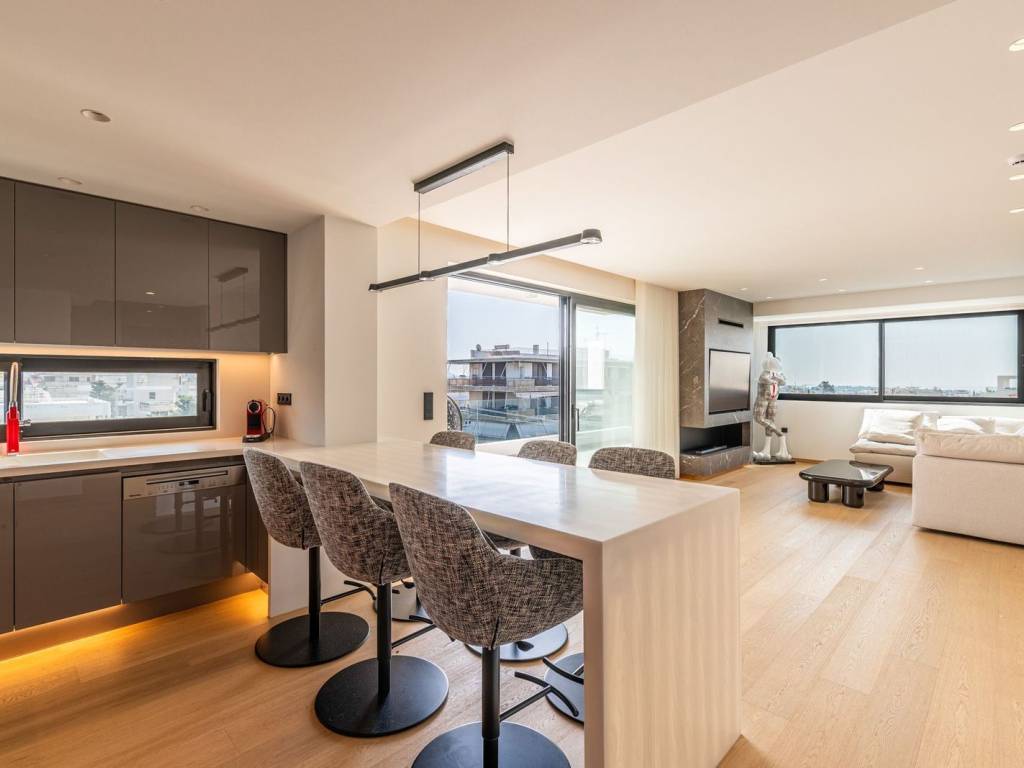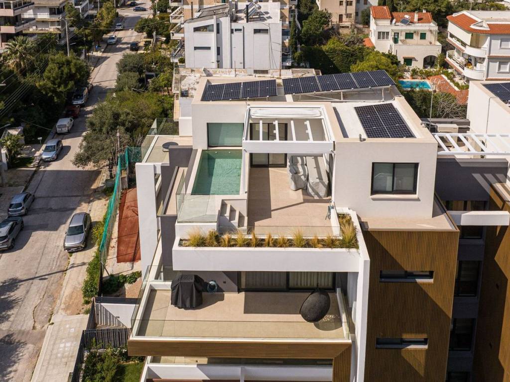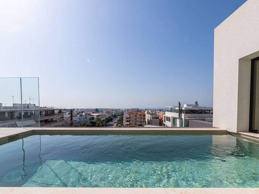 In the heart of Glyfada Golf, in one of the most prestigious locations of the Athenian Riviera, this exceptional 4th–5th floor penthouse maisonette of 143 sq.m., built in 2024, redefines contemporary luxury living. The residence boasts breathtaking, unobstructed sea views from every corner of the home, including the living room and all bedrooms, offering a daily sense of serenity and connection to the blue horizon. Upon entering the 4th floor, you are welcomed into a spacious open-plan layout featuring a bright living room and modern kitchen, designed with sleek aesthetics and expansive floor-to-ceiling windows that fully capture the magnificent sea views. On the same level, there is a comfortable bedroom with stunning sea views and its own en-suite bathroom, as well as a guest WC, ensuring both privacy and functionality. The upper (5th) floor hosts two additional bedrooms, both enjoying uninterrupted sea views, along with a stylish, contemporary bathroom serving this level. The true highlight of this remarkable property is the private rooftop terrace on the 5th floor. Featuring a pergola and a 20 sq.m. private swimming pool, it offers the ultimate setting for relaxation and entertaining, where the endless sea meets the sky in a setting of absolute privacy and refined elegance. A rare opportunity to acquire a high-specification residence in a prime Glyfada location, combining modern design, spectacular views, and premium living on the Athenian Riviera. Glyfada is the commercial hub of the Athens Riviera with busy commercial pace during the day and lively nightlife till dawn. It is a fashion destination with many branded boutiques but also many shops with a character and style. Blocked on one side of the city by the unique 18-hole golf course and next to it with hiking and cycling trails, Glyfada promises to offer the best for all ways of life. Unique features: A modern seaside destination with easy access to beaches, cafes, restaurants and summer beach bars and clubs. Glyfada is close to international schools and is a safe environment for raising children, has many opportunities for entertainment, fitness and sports and is an investment option with rewarding benefits. Also in the area you will find cinemas, modern boutiques, restaurants for every taste and budget, bars, lively outdoor life and one of the largest marinas along the coast. Accessibility: Glyfada is well connected to the city center and the coast by metro, tram and buses and is only a 30-minute drive from the port of Piraeus, offering a quick getaway to the islands and 35 minutes from the international airport. Investment dynamics: Glyfada has always been attractive to real estate investors and with the new reconstruction project of Elliniko, it is ready to experience a strong rise in property prices.