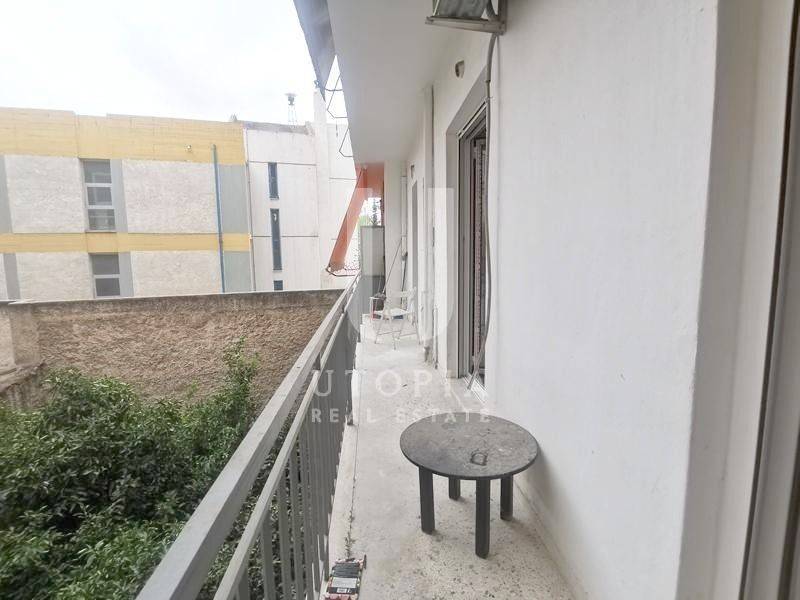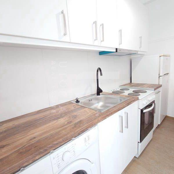Kolonos - Apartment 35sqm partially furnished, bedroom, levels 1, 1st, fully renovated, year built 1985, renovation year 2023, energy class D, living room, hall, kitchen, bathroom, heating type: central (natural gas), quiet, luminous, internal plot, painted, storage space, balconies, large balconies, elevator, loft storage, built in appliances, aluminum frames, double glazed windows, wood & tile floors, separate kitchen, three phase electricity, secure door, residential zone.