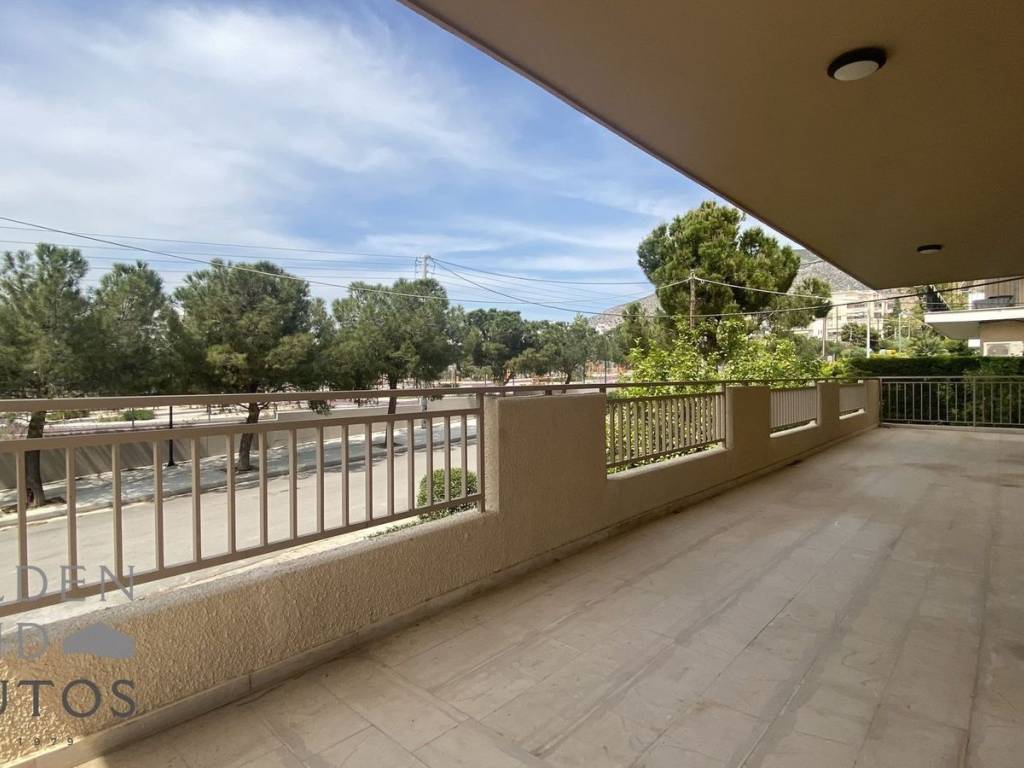 This fine 1st floor apartment is a spacious and modern living space that covers an area of 108 sqm. It has a well-designed layout that features 2 bedrooms, 2 bathrooms, and a living room with an open plan design kitchen. The apartment boasts of many attractive features that enhance its functionality and comfort. The heating system is autonomous and runs on oil, which provides efficient heating throughout the apartment. The aluminum frames and double glazed windows provide excellent insulation, keeping the apartment warm during the winter and cool during the summer. The solar water heater is an energy-efficient way to provide hot water for the apartment. The residence has wooden floorings that add a touch of warmth and elegance. The awnings and mosquito window screens provide shade and protection from insects, making it easy to enjoy the outdoor view and fresh air. There is also a storage room of 7-9 sqm, which provides ample space for storing personal belongings. The apartment is equipped with an alarm system, ensuring the safety and security of the residents. The elevator provides easy access to the residence, making it convenient for people. There is also 1 open parking space, which provides a secure place to park your car. The property has spacious balconies and boasts of an unlimited view towards the mountain and the park, providing a beautiful and serene environment to live in. It was built in 1983 and has been renovated in 2021, ensuring it is in excellent condition and has modern amenities. Overall, this apartment is an excellent choice for anyone looking for a comfortable and modern living space.