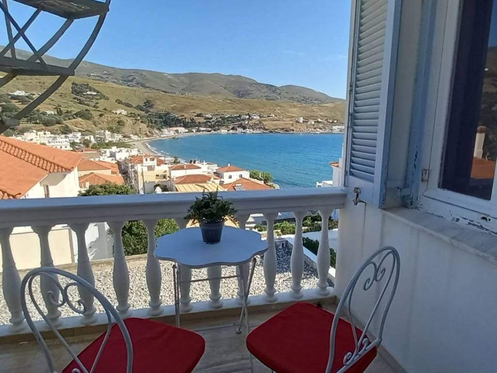 an apartment on the 1st floor of a building fully equipped ( fridge , kitchen and laundry machine) and furnished near the centre of chora -andros near the pedestrian main street. with sea view has one bedroom , one livingroom , one bathroom and a kitchen . it has also a heating for winter time. rent monthly for all year with a monthly rent of 520euros and we discuss a short period of rent during summer time on other price(may till end august) . contact : maria tsakiri phone: 0030 6992673833