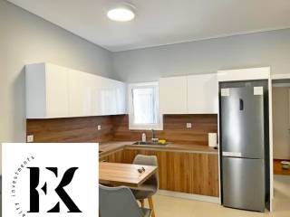 Kato Patisia, 74 sq m apartment, 3rd floor, bright, fully furnished, luxuriously renovated in 2023 and with modern decoration. It includes 1 open plan living room/kitchen, 2 bedrooms, 1 bathroom and balconies. The apartment has a security door, air conditioning, individual natural gas heating, solar water heater, aluminum frames with double glazing, awnings, built-in wardrobes, loft, wooden and tiled floors and is painted. The apartment is delivered fully furnished, additionally featuring a built-in kitchen, large refrigerator, washing machine and television. It is located near a local market, with easy access to public transport as well as a METRO station. The address is approximate. price: 750 euros