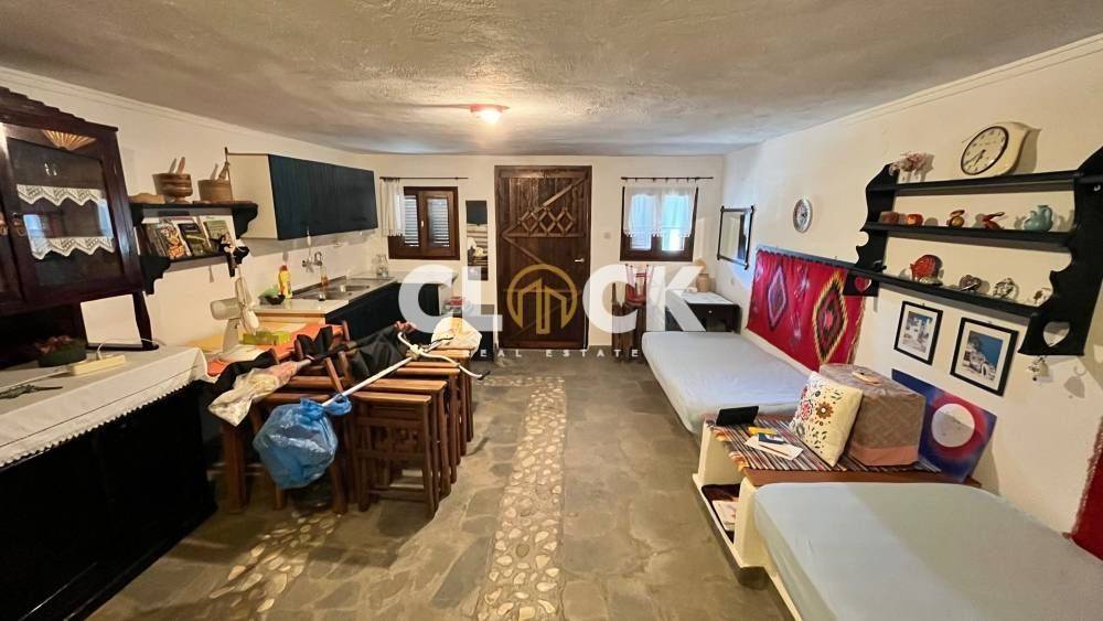 The house is spread over two separate levels and features an open-plan living room and kitchen area, with built-in stone beds, blending a traditional yet modern style. Additionally, it includes two external storage rooms and two bathrooms, providing comfort and functionality for everyday living.