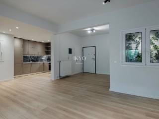 PAGKRATI Fully Renovated 75 sq.m. Apartment The apartment is located on the 1st floor of a residential building from the 1970s in Pagkrati, on a wide, tree-lined street in a very central and vibrant part of the neighborhood. The property was fully renovated in 2025 and features a modern layout with a bright open-plan living room and kitchen that opens onto a large 13.4 sq.m. veranda. It includes one bedroom (with the potential of a second one), one bathroom and one WC. The renovation includes completely new electrical and plumbing installations, high-quality Exalco aluminum window frames with shutters, a security entrance door, new interior doors and brand-new bedroom wardrobes. The flooring consists of Italian tiles and high-durability German vinyl, while the kitchen is built with quality Egger materials and is equipped with built-in appliances including an oven, cooktop, extractor hood, dishwasher and refrigerator. The apartment features central natural gas heating, pre-installation for autonomous heating and air conditioning, a complete LED lighting installation and Legrand Valena Life electrical equipment, as well as high-quality sanitary ware of Italian and Spanish origin. The building is equipped with an elevator. The location is particularly advantageous, within close distance of shops, cafés, restaurants and key points of interest in Pangrati. It is approximately 800 meters from Evangelismos metro station and about 400 meters from the under-construction Kaisariani metro station of Line 4. A private paid parking facility is also located next to the property. An apartment that represents an excellent choice both for owner-occupation and for investment.