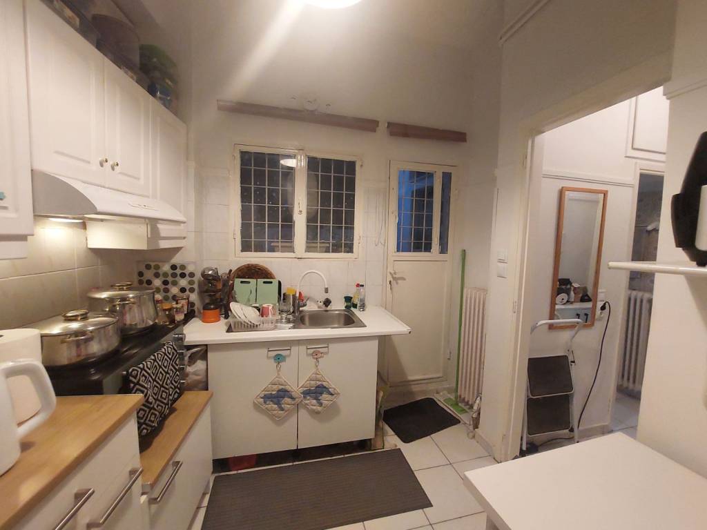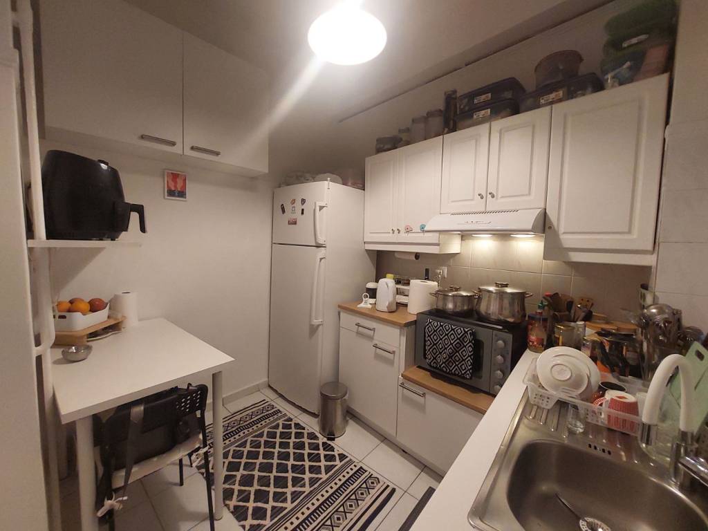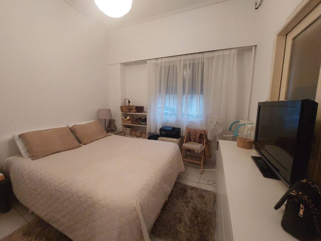 For sale an elevated ground floor on the borders of Hymettus and Byron. Located in a very quiet area, in front of the grove of the church of Peter & Paul. Diameter 52 sq m. With one bedroom, a living room that becomes a bedroom, a bathroom and a kitchen, which is connected to a courtyard. Very bright, with the windows of the bedroom and living room diffusing the morning light. It has oil heating. Absolutely habitable, recently painted and checked electrically and hydraulically. With modern intercom with camera and fiber. It has a large loft.