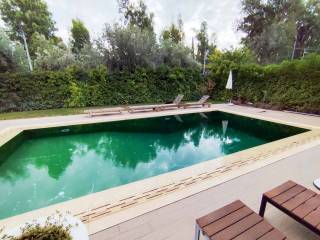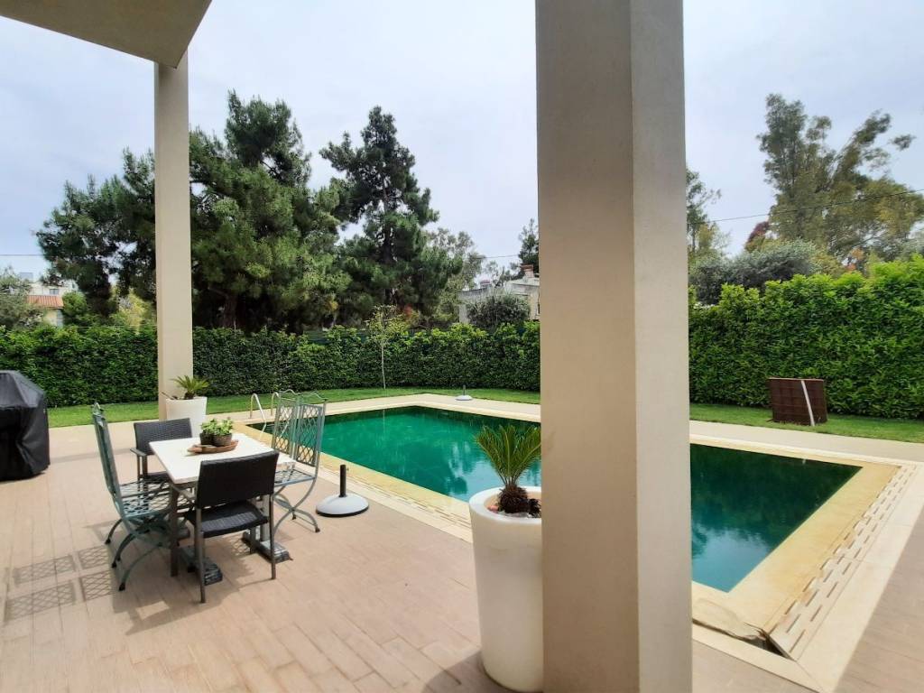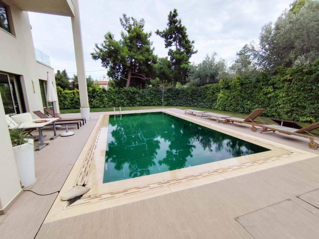 In Filothei, one of the most tranquil and green areas of Athens, just a few steps from Athens College, a unique ground-floor apartment of 158 sq.m., built in 2008, is available for rent. Surrounded by a lush landscaped garden with a swimming pool, this residence exudes a sense of calm and understated luxury, offering an oasis of serenity in the heart of the city. The apartment unfolds around a spacious living area with large openings that flood the space with natural light and create a seamless connection to the garden. The generous master bedroom features a walk-in closet, while a guest WC and an independent, fully equipped kitchen with an island, premium appliances, and excellent functionality complete the layout. The architectural design is defined by its minimal elegance, top-quality materials, and a refined sense of openness and balance throughout. Heavy-duty triple-glazed aluminium frames, an underfloor heating and cooling system powered by geothermal energy, and excellent sound and thermal insulation ensure outstanding energy efficiency and comfort year-round. The apartment is bright, peaceful, and comes with a dedicated parking space. Its prime location, next to prestigious private schools and with immediate access to major city arteries, along with its exceptional construction quality and high-end aesthetic design, make this property an outstanding choice for those seeking a residence of rare sophistication and comfort in Filothei .