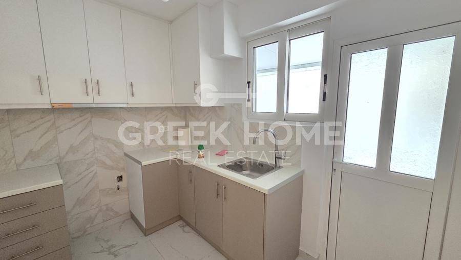 Kallithea (Attica - Southern Suburbs), Lofos Filaretou - Apartment 52sqm unfurnished, bedrooms 2, semi-basement, fully renovated, year built 1972, renovation year 2026, energy class B+, living room, kitchen, bathroom, heating type: autonomous (air condition), a/c type splits, quiet, dual aspect apartment, luminous, frontage, painted, electric roller shutters, balconies, large balconies, balcony 20sqm, garden, thermal shut-off frames, double glazed windows, door screen, ceramic tiles floors, separate kitchen, night electricity discount rate, secure door, video doorbell, luxurious, internet, pets allowed, investment property, special offer, close to square (up to 100m), close to super market (up to 100m), close to park (up to 200m), close to bus stop (up to 100m).