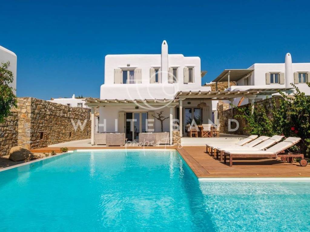 Discover your perfect summer retreat with this exceptional 130 sq.m. villa for sale in the serene area of Kalafatis, Mykonos. Ideally located just moments from the island’s most stunning southeastern beaches, this luxury residence offers the perfect balance of privacy, style, and convenience. Perched gracefully on a hillside, the villa enjoys uninterrupted views over Kalafatis Bay, creating a truly captivating backdrop. The outdoor space is designed as a private sanctuary, featuring a sleek infinity pool set into a stylish wooden deck, complete with comfortable loungers for basking in the Aegean sun. The interiors combine authentic Mykonian charm with contemporary elegance. Bright and airy, the 130 sq.m. layout spans two levels, offering three bedrooms and three bathrooms, a fully equipped kitchen, and a welcoming living area. Whitewashed walls, natural stone elements, and subtle accents of color create a sophisticated yet inviting atmosphere. Additional features include a small outdoor storage room with bathroom and ample parking space for up to three cars. Maintained in excellent condition, the villa provides a refined and tranquil escape, perfectly suited for families or small groups seeking comfort and authenticity in one of Mykonos’ most enchanting settings. The property accommodates six guests and is ideally located within short driving distance of the island’s main attractions. The airport is just 8 km away, the new port 5 km, and Mykonos Town (Chora) can be reached in only 7 minutes. The picturesque village of Ano Mera lies 12 km away, while local shops and services are just 5.5 km from the villa. Nearby beaches, including Houlakia and Agios Stefanos, are within a five-minute drive, offering crystal-clear waters and peaceful surroundings. This villa is a rare opportunity to own a slice of Mykonian paradise, ideal both as a private retreat and as a high-value investment property.