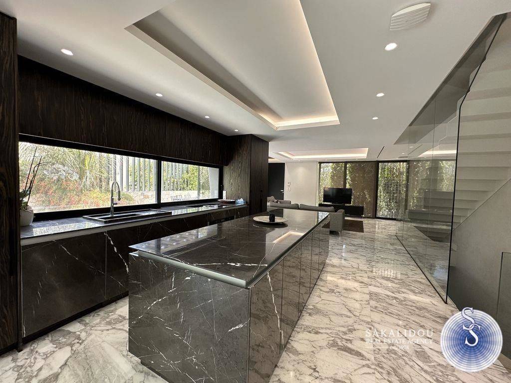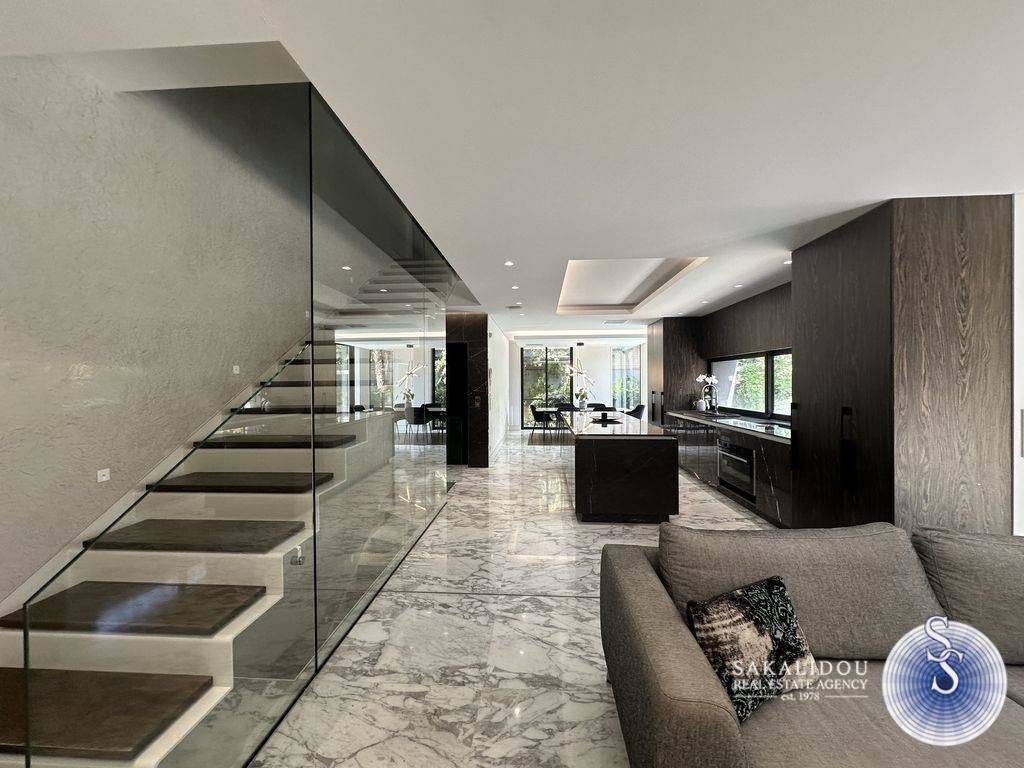 Voula – Luxurious Fully Furnished Villa with Modern Architecture, Garden and Pool Situated in a prime location in Voula, within a quiet and lush green environment, this impressive fully furnished villa is built to the highest standards. Featuring contemporary design and top-quality materials, it perfectly combines elegance, functionality, and ultimate comfort. The ground floor welcomes guests with a spacious and bright reception area that offers unobstructed views of the swimming pool and the beautifully landscaped garden. The modern open-plan kitchen is fully equipped and seamlessly integrated into the living space. The first floor includes three bedrooms, one of which is a master with an en suite bathroom. The second floor has a second living area. The bright semi-basement level offers a staff bedroom, a bathroom, and a generous playroom with direct access to the outdoor area and the pool — ideal for relaxation or entertaining. The property also includes three enclosed parking spaces, an alarm system, and autonomous heating, ensuring maximum security and convenience. Available for rent from September to May.