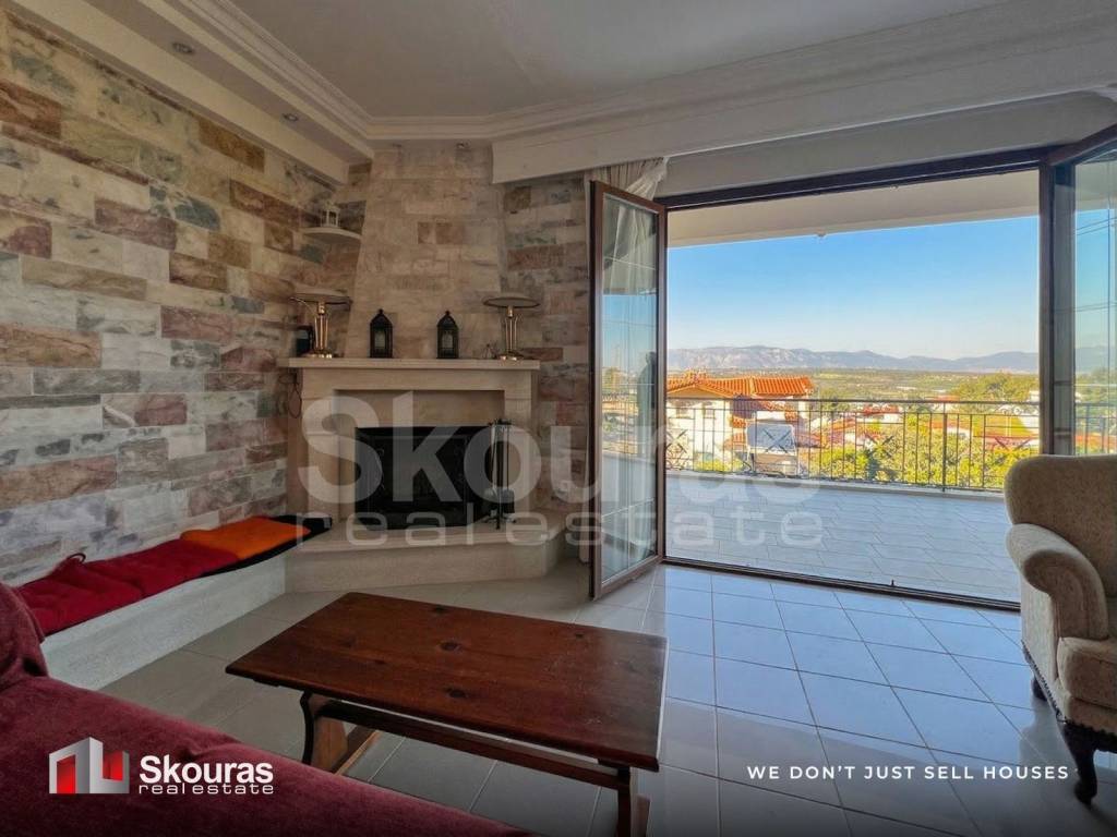 Detached house available for long-term rent in the area of Agia Paraskevi, Xylokeriza. A beautiful detached house surrounded by nature is available for rent in a quiet and charming settlement, ideal for people seeking tranquility, quality of life, and close contact with the natural environment. The property offers a unique sense of calm and is an excellent choice for families, especially for those with pets, as four-legged family members are welcome in the outdoor space of the house. The residence is developed on two levels with a total area of 150 sq.m. The elevated ground floor consists of a bright living room with a fireplace and dining area in an open layout, a separate kitchen, one bedroom, and one bathroom. On the first floor there are two additional bedrooms, a comfortable sitting area that can also be used as an office or relaxation space, and a WC. The house is surrounded by balconies offering unobstructed and endless views of the mountain, creating the perfect atmosphere for relaxation throughout the year. The outdoor area includes a garden with citrus trees, a BBQ area ideal for gatherings with family and friends, and one parking space within the property. The house is delivered fully furnished and equipped with electrical appliances. It features autonomous heating, solar panels for hot water, and air conditioning units, ensuring comfort and functionality all year round. An excellent residential option for those who wish to combine the comfort of a fully equipped home with the peace and beauty of nature. Skouras Real Estate #1 Greek Real Estate Agency in the Peloponnese 4 Offices: Nafplio | Kalamata | Corinth | Porto Heli 3000+ Properties | 18+ Years of Experience | Support in 5 Languages Marketing & Website - European Property Awards 2020 Marketing Techniques & Development - EPPA 2022 & 2024 Call Center: +30 27520 29529 Mobile: +30 6971736506 Email: spdo@skourasrealestate.gr Property Manager: Dionysopoulos Spiros More than 3,000 properties available at: www.skourasrealestate.gr Note: The property information is based on data provided to us by the owners. Skouras Real Estate is not responsible for any inaccuracies. An ID card or passport is required to visit properties. Locations on the maps are approximate