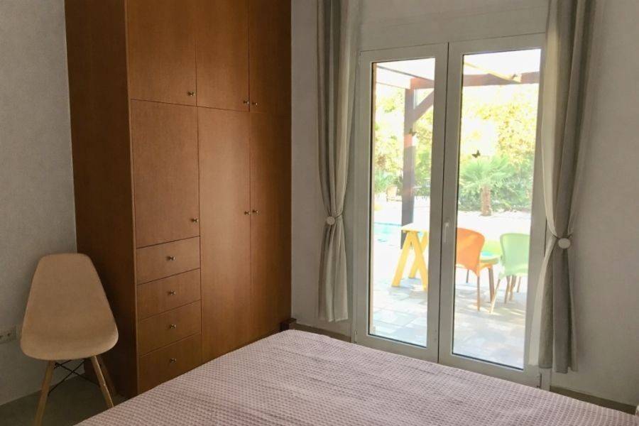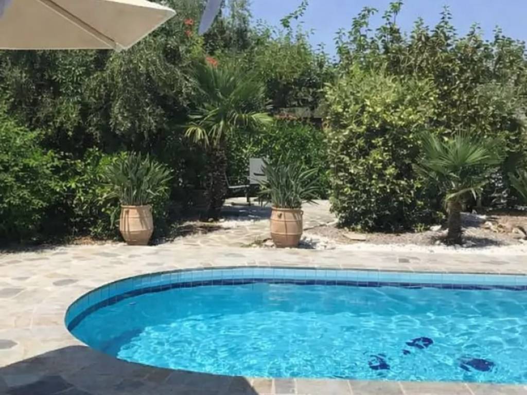 Arkadi, Loutra, Villa For Sale, 79 sq.m., In Plot 500 sq.m., Property Status: Amazing, Floor: Ground floor, 2 Bedrooms 1 Bathroom(s), Heating: Autonomous - Petrol, View: Mountain View + Sea view, Building Year: 2016, Energy Certificate: D, 1 parking(s), Floor type: Tiles, Type of door frames: Aluminum, Features: Security door, Storage room, Fireplace, Internet Line, Electric Appliances, Double Glazed Windows, BBQ, No shared expenses, Price Negotiable, For Investment, Furnished, Airy, Bright, AirConditioning, Solar water system, Grass, Automatic Watering, Trees, Swimming pool, Painted, Suitable for Commercial Use, Distance from: Airport (m): 60000, Seaside (m): 4000, City (m): 100000, Village (m): 500, Price: 295.000€. Kreta Eiendom S.A., Tel: +30 2831 0 21430