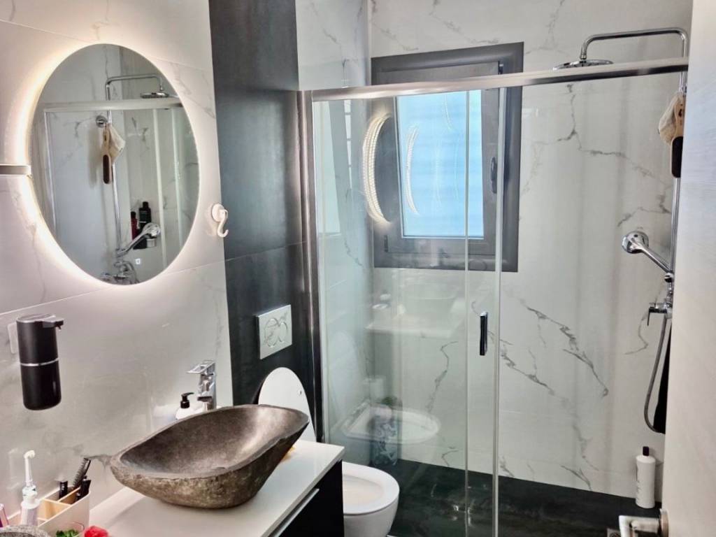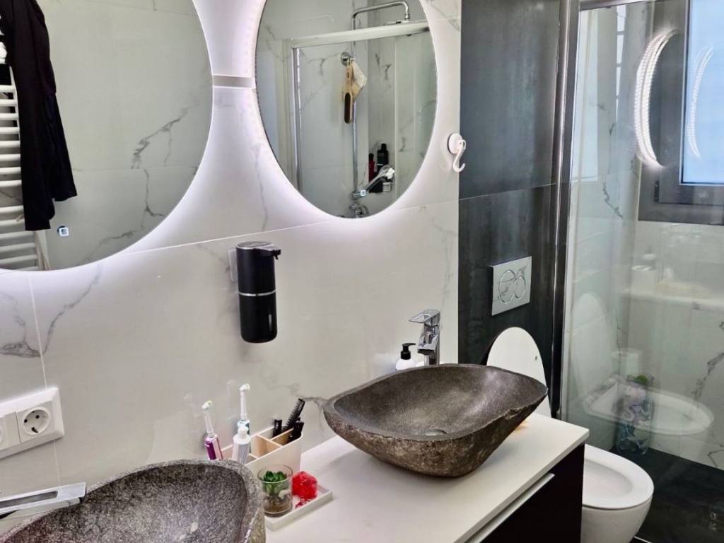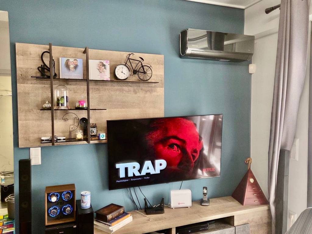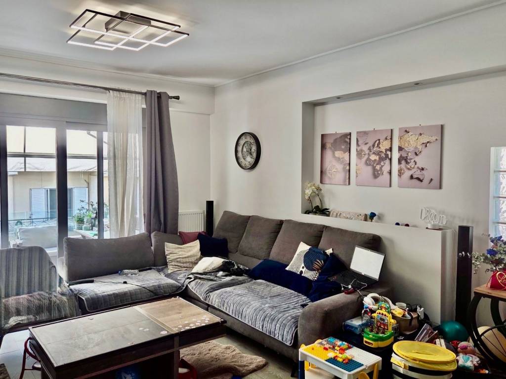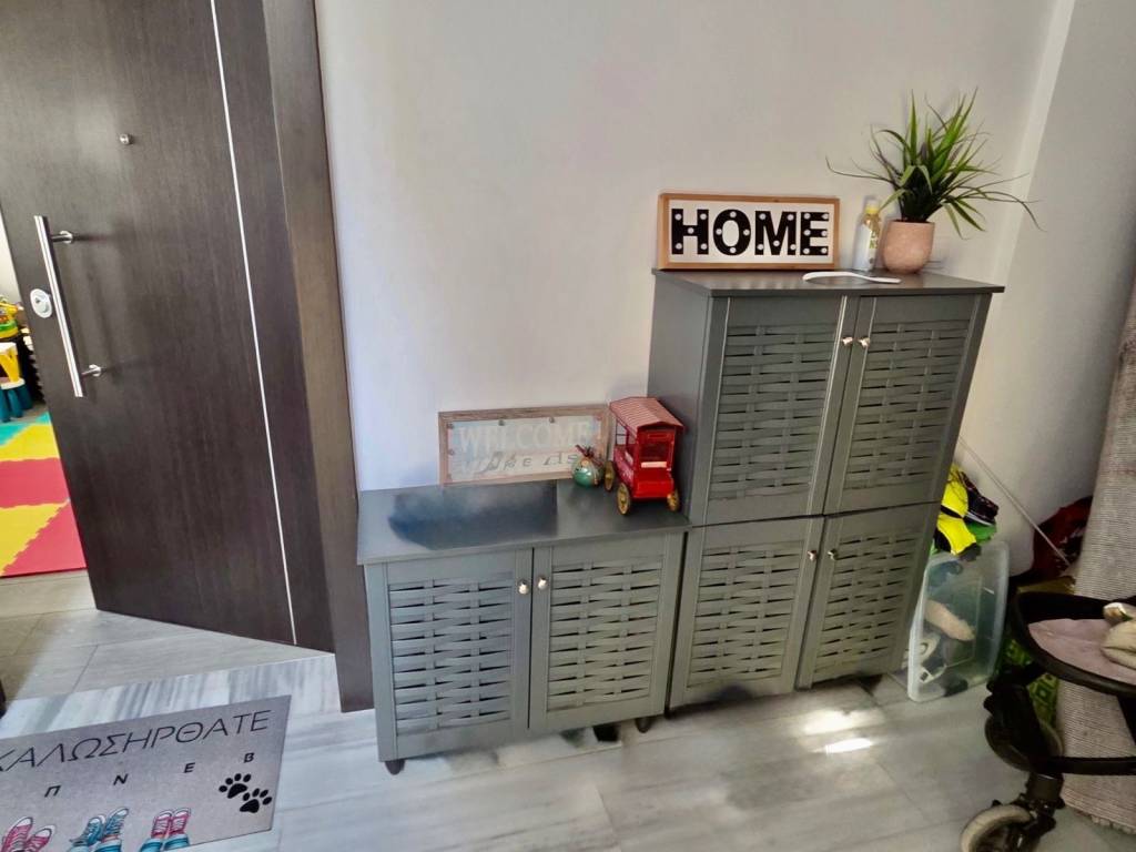 For sale: smart home first-floor whole-floor apartment of 105 sq.m., located in the heart of Haidari, just two streets above Karaiskaki Street, in an excellent location close to schools, supermarkets, public transportation, sports facilities, and squares. The property consists of a spacious open-plan living room and kitchen, 3 comfortable bedrooms, and 2 large bathrooms. It includes 1 parking space, 2 storage rooms, an elevator, as well as an additional exterior space for exclusive use, ideal for extra storage (shoe cabinets, carpets, etc.). Built at the end of 2021 and first occupied in early 2022, the apartment is in excellent condition. Heating is provided via a heat pump, while all rooms and the living area are equipped with air conditioning units that can be controlled remotely via smartphone. This is a fully equipped smart home, as the solar water heater, heat pump, electric shutters, and awnings can all be managed through a mobile application. The property also features a security alarm system, surveillance cameras, and concealed lighting in the bedrooms, living room, and bathrooms, offering a modern and stylish living environment. Situated in a small and quiet residential building of only 4 apartments, it ensures privacy and high quality of living. An excellent choice both for owner-occupation and as an investment, combining modern specifications, energy efficiency, and strong rental demand in the area.