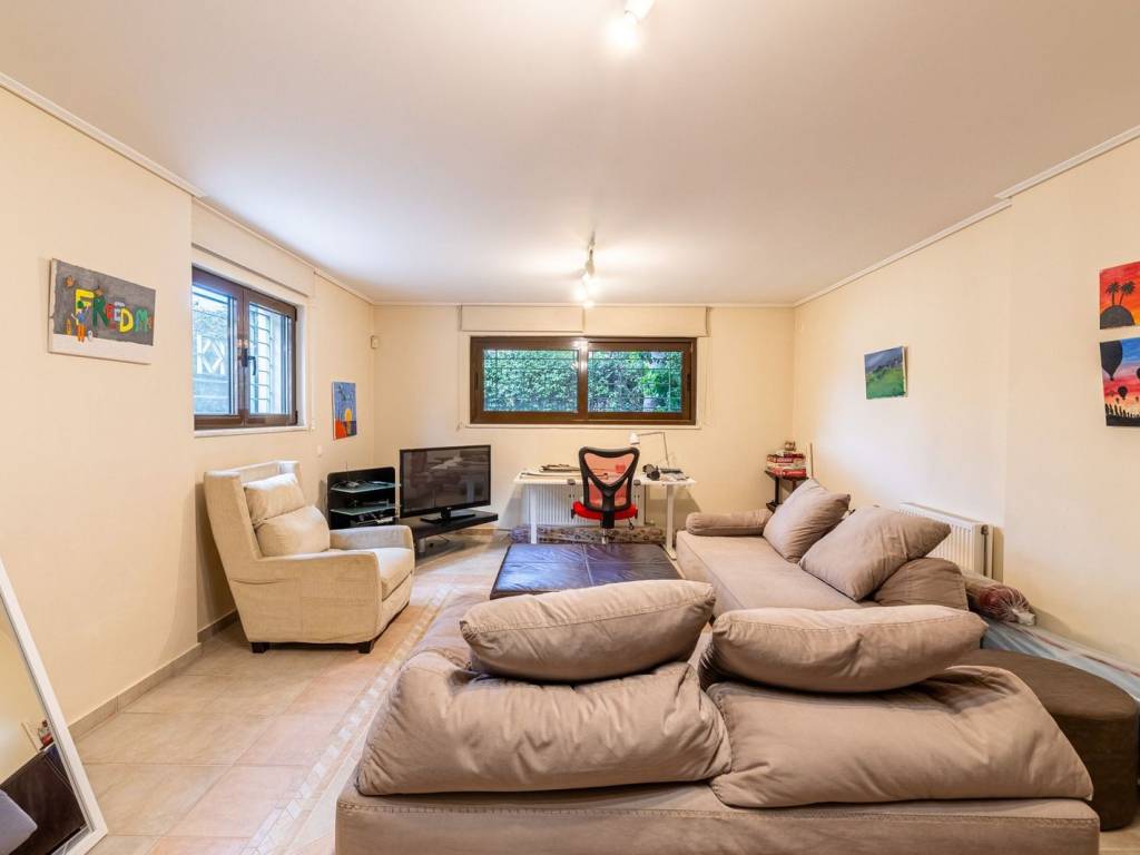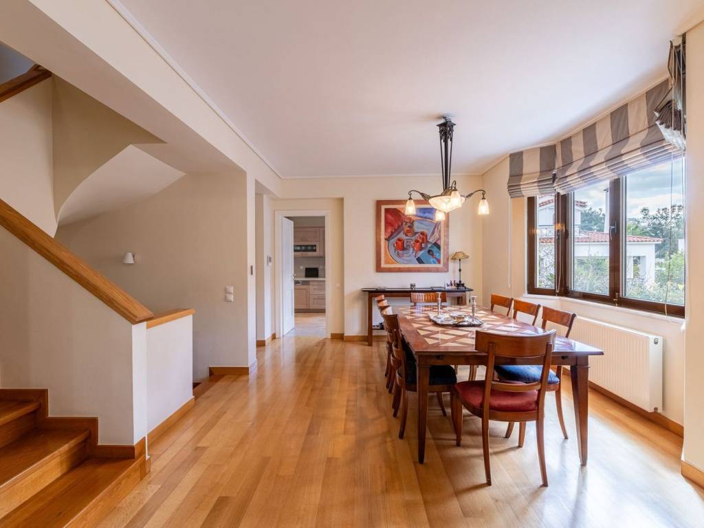 Discover your dream home just minutes from the sea, in a quiet and family-friendly neighborhood in Pigadakia, Voula! This elegant semi-detached maisonette of 300 m² offers all the comforts of modern living within a peaceful and idyllic setting. On the elevated ground floor, with a total area of 99.94 m², the main entrance leads to a welcoming reception area that features a spacious living room with a fireplace and an open-plan dining area. Large openings allow natural light to flood the space throughout the day, while direct access to a generous front terrace offers beautiful views of the greenery. On the same level, the large main kitchen is fully equipped with modern appliances and includes a spacious dining area, ideal for daily family meals. The kitchen opens onto a private garden of approximately 40 m², complete with a wooden deck and perimeter planting, creating a charming and tranquil space for relaxation and entertaining guests. The first floor, covering 81.43 m², serves as the sleeping area and consists of a spacious master bedroom with a large en-suite bathroom and a private balcony overlooking the garden. Additionally, there are two bright bedrooms, one of which has access to a quiet front-facing balcony with lovely neighborhood views. Both bedrooms share a common bathroom. On the second floor, a beautiful 15 m² attic can be adapted as a home office, gym, or cozy sitting area, depending on the needs of the new owner. This space also benefits from a balcony with panoramic views of the area. The basement, with a total area of 99.94 m², functions as a fully independent apartment, perfect for guests or staff. It includes a spacious living room, a fully equipped kitchen, a primary bedroom, a staff room, a bathroom, and an additional room with built-in storage cabinets. Large windows ensure plenty of natural light, creating a pleasant atmosphere. All levels are connected by an elegant internal staircase, while the residence also features an internal elevator with stops from the first floor down to the underground garage. The garage offers two parking spaces and additional storage. The energy efficiency class of the house is C. Just five minutes from the vibrant center of Voula, this residence provides easy access to shops, restaurants, and essential services while remaining within close proximity to the stunning beaches of the Athenian Riviera. Whether you are looking for the perfect primary residence or a unique vacation retreat, this impressive maisonette is a rare opportunity not to be missed! Location: Voula is a prime location on the Athens Riviera as it is very close to all amenities and just 30 minutes away from Athens’ historic city center. Unique features: Voula is a vibrant but peaceful and safe residential area that is home to trendy boutiques, wine bars, cafes, restaurants, a magnificent coastline and boasts a well-equipped public hospital. It has a lively commercial center with supermarkets, gyms, banks and is very close to international schools. Accessibility: Accessible by bus to the city center and to Glyfada, the closest commercial hub and just a 20-minute drive away from the Athens International Airport. It is a ten minute drive from the biggest new real estate development project in Hellinikon. Investment potential: Like most areas on the Athens Riviera, property prices here will always offer a good return on investment.