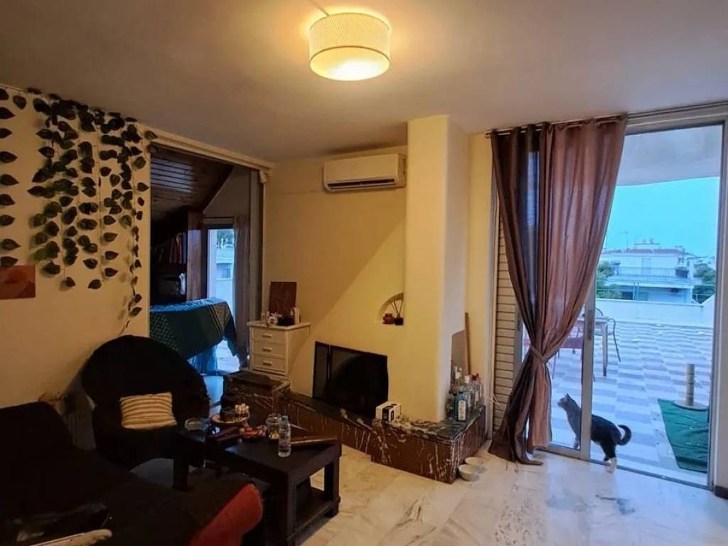 ρετιρέ 5ου ορόφου. Διαθέτει βεράντα 70τμ με θέα στον Υμηττό, αποκλειστικής χρήσης του ακινήτου και με δυνατότητα επέκτασης των εσωτερικών χώρων του διαμερίσματος
