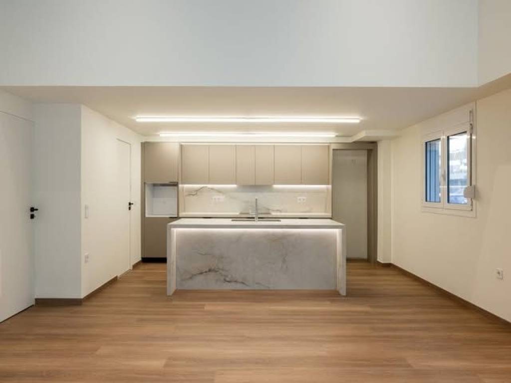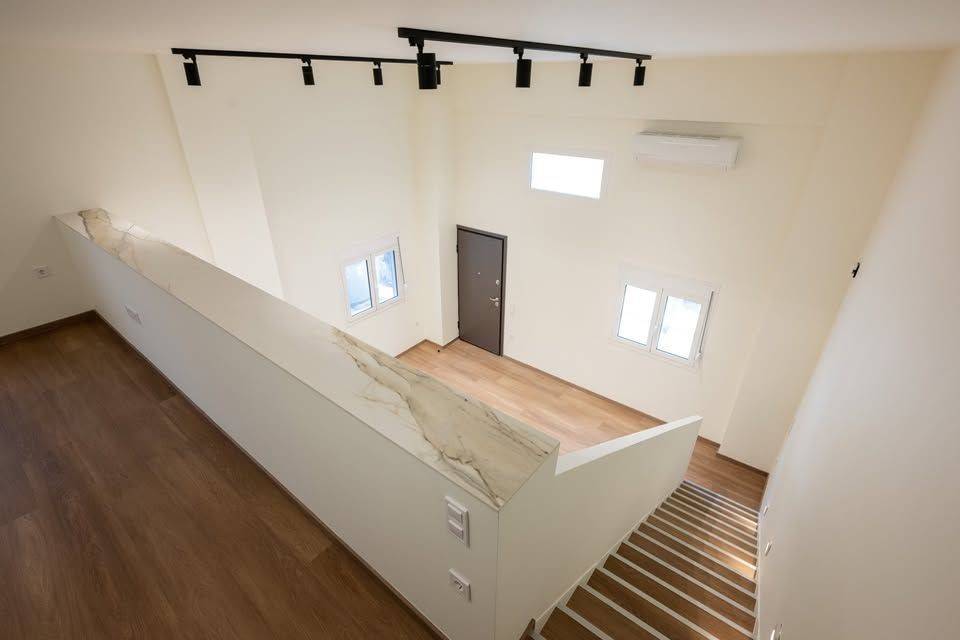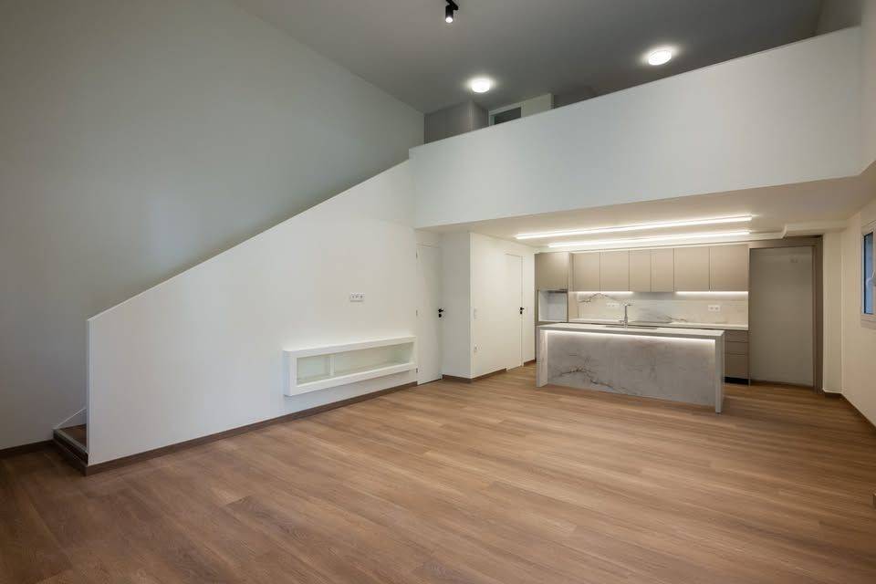 Korydallos near the Metro: A wonderful, radically renovated loft of 80sqm, with an elevated ground floor, with a parking space on the lawn, is for sale. Built in 1972, completely renovated in 2026, with 1 bedroom on the mezzanine along with 1 bathroom, total area of ​​20sqm. The lower floor is a single space of 60sqm, with a fully equipped kitchen with many useful kitchen cabinets, with an island covered with artificial marble granite without pores (does not stain!) and hidden lighting. On the ground floor there is a second bathroom and a storage room with a door under the internal staircase. The space is cooled with a 24,000BTU air conditioning that covers the entire house with heating and cooling. Suitable for Golden Visa.