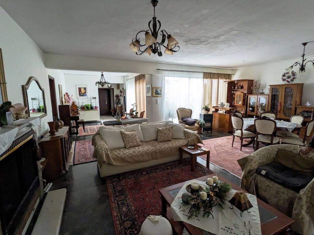 The apartment is located in the center of Agia Paraskevi, near the main street of Agiou Ioannou. It has an area of 236 square meters, of which 16 square meters are an atrium. It consists of 4 bedrooms, 3 bathrooms, 1 wc, kitchen and spacious living- dining room with fireplace. It is extremely bright, has large balconies with nice view, and parking.