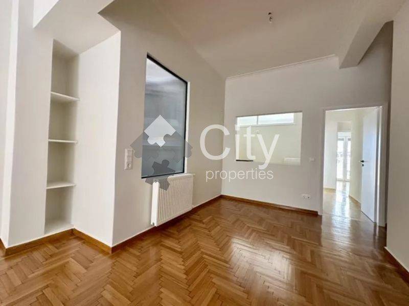 This is a bright and very bright apartment, with the living room facing the street and the three bedrooms opening to the back, offering a view of the Acropolis. It consists of three bedrooms, a comfortable living room, a kitchen and a bathroom, while its layout makes it ideal for both residential and professional use.