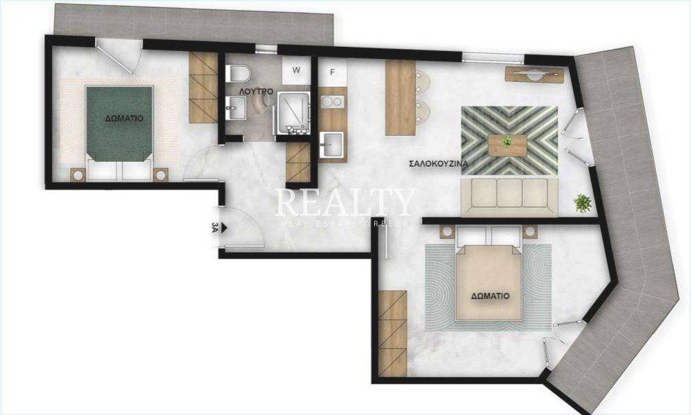 Apartamento T2 muito bom estado, terceiro andar, Faliro - Ippokratio