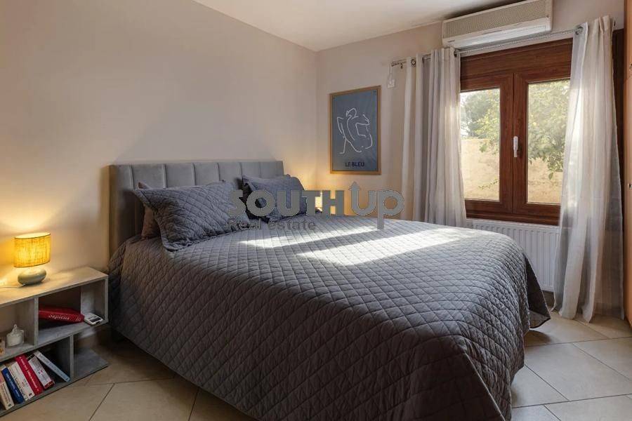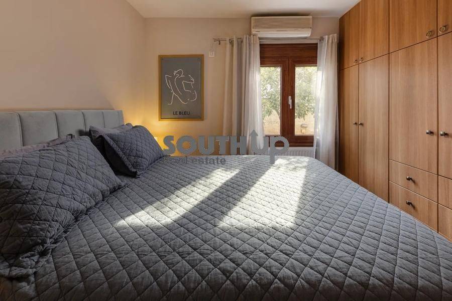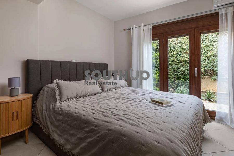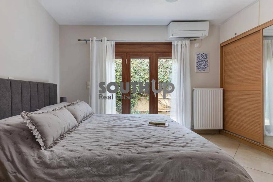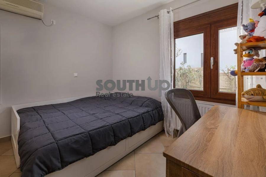 Kalyvia Thorikou, Lagonisi - Apartment 150sqm plot 630sqm, fully furnished, bedrooms 3, levels 1, ground floor (150sqm, 3 bedrooms, living room, kitchen, 2 bathrooms), very good condition, year built 2004, energy class B, living room, kitchen, 2 bathrooms, heating type: autonomous (gas), air condition, dual aspect apartment, luminous, storage space, fireplace, garden, aluminum frames, double glazed windows, door screen, night electricity discount rate, alarm, residential zone, north-eastern orientation, access from asphalt.