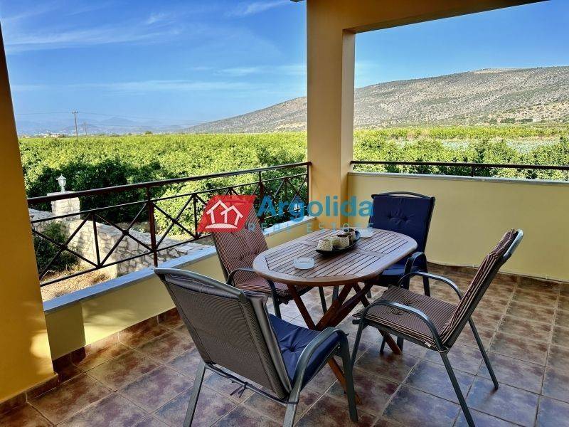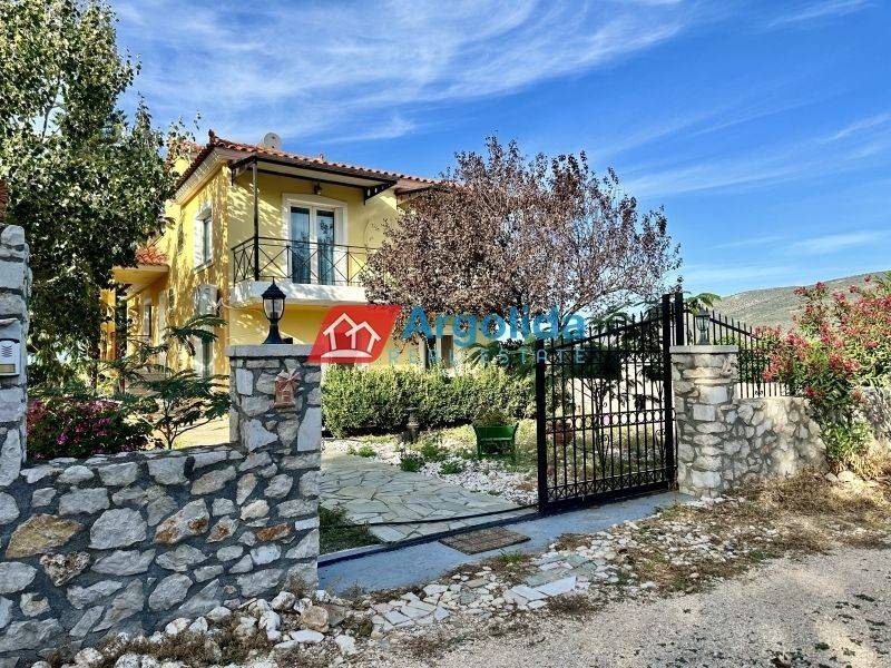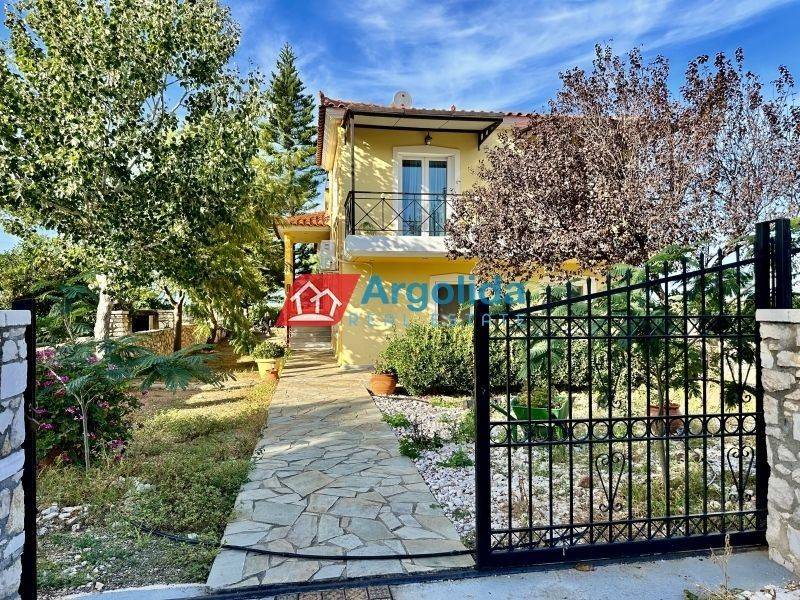 Available for rent in Iria Argolida, this fully furnished and equipped detached house is spread over three levels with a total area of 150 sq.m., set on a 500 sq.m. plot, ideal for long term rental. The property offers spacious and functional living areas, including an open-plan living and dining area with fireplace, a large kitchen, four comfortable bedrooms and one bathroom, while all rooms have direct access to generous verandas with open views. The exterior features a সুন্দর garden, creating a peaceful and relaxing living environment. It is equipped with aluminum frames with double glazing and insect screens, a reinforced security door, solar water heater, fireplace and air conditioning units, ensuring comfort throughout the year. The property stands out for its quiet location, offering privacy while remaining close to the sea, as the nearest beach is only a short drive away. An excellent choice for those seeking a home near the sea in a tranquil setting, suitable for permanent living.