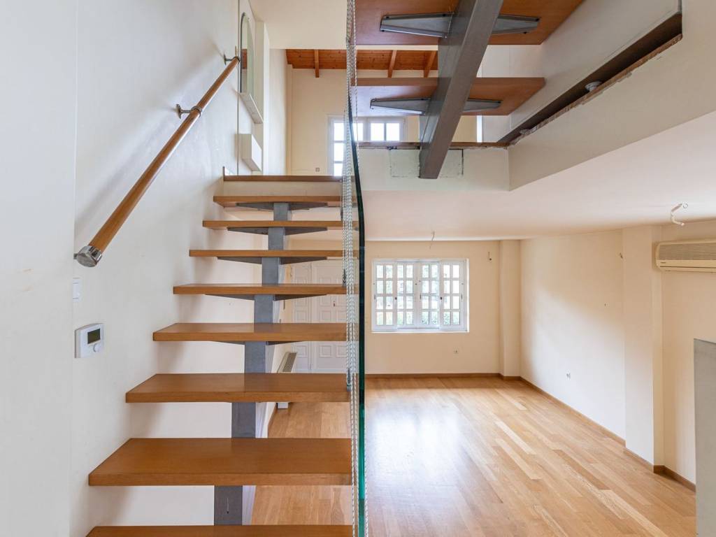 Located in a quiet and well-established residential area of Pefki, this bright and elegant maisonette of 141 sq.m. semi detached maisonette was built in 2002 and renovated in 2014. Part of a semi-detached residence, it benefits from a discreet separation, maintaining the feel of an independent home in everyday living. The property unfolds across multiple levels, offering a distinct sense of privacy and functional autonomy. Its internal layout is thoughtfully arranged on split levels, creating a natural and harmonious separation of spaces. The living area and kitchen are subtly separated by a few steps, enhancing the functional zoning and defining each space with clarity, while the bedrooms are distributed across different levels, ensuring privacy for each member of the household. In total, the property features three bedrooms and two bathrooms, one of which includes a jacuzzi. An internal staircase leads to the attic, a distinctive space with exposed wooden elements, ideal for use as a master bedroom, home office, or private retreat, and continues to a well-maintained rooftop terrace with open green views, offering a peaceful outdoor setting for relaxation. The residence is characterised by its warm and timeless aesthetic, featuring oak flooring and abundant natural light throughout the day, thanks to its dual-aspect layout. It is equipped with autonomous natural gas heating, fan coil system, air conditioning units, aluminium window frames with double-glazed safety glass, and an alarm system, ensuring comfort and security in everyday living. This is a fully regularised property, ready for immediate sale, ideally suited for families or couples seeking a functional home with clear spatial zoning, privacy, and a calm residential environment. The location offers easy access to schools, local amenities, and main road connections, while preserving its quiet residential character. Pefki is an area in the Northern Sector of Athens, 10 km northeast of the center of Athens. It is one of the two municipal units of the Municipality of Lykovrysi-Pefki. Unique Characteristics: Despite its small size, Pefki has large groves and many green spaces, and it has a purely residential character, with Leoforos Eirinis serving the professional uses in the area and connecting it with neighboring municipalities. The name of the Municipality is derived from the natural wealth of the area in the characteristic Mediterranean pine of Attica. The pine also adorns the emblem of the local administrative entity. Accessibility: It is served by the neighboring stations of the Maroussi electric railway, KAT, Eirini, and Nerantziotissa. The last station is also served by the Suburban Railway and by the municipal bus line of Pefki. Investment Potential: It is an affordable and attractive residential area of the Northern Suburbs.