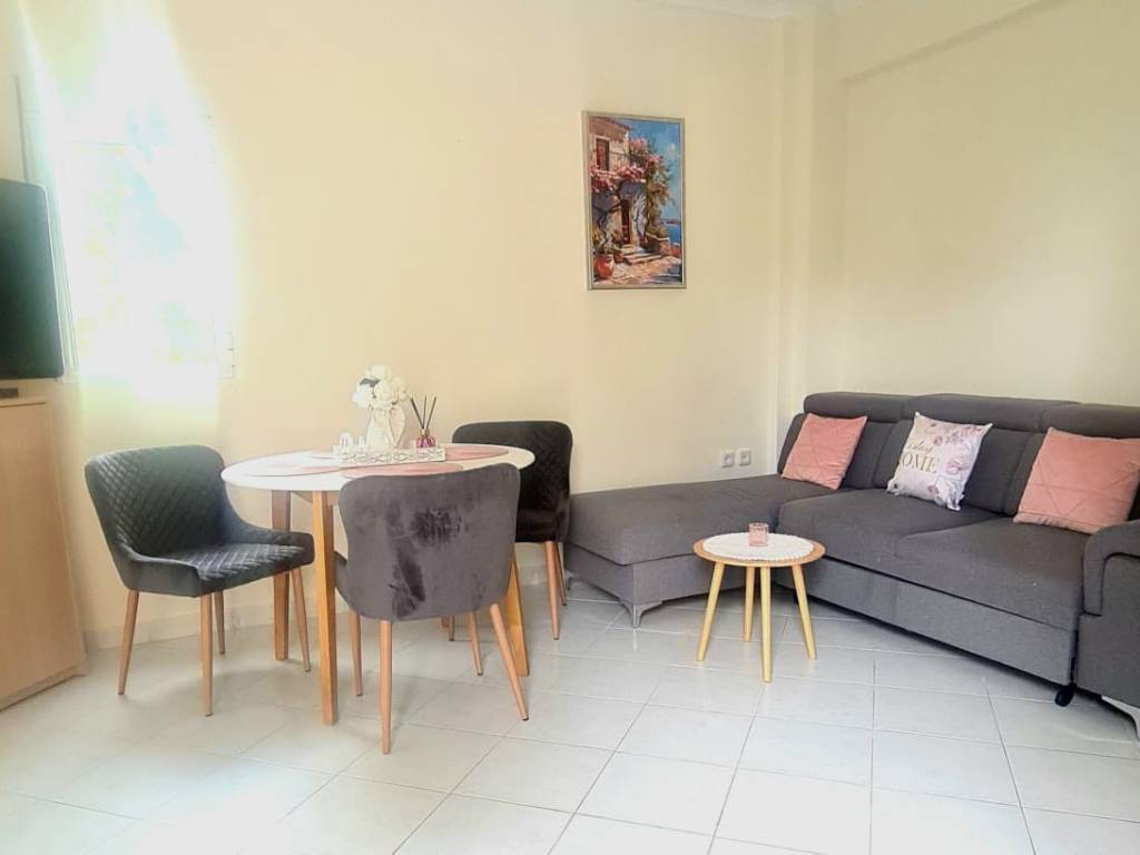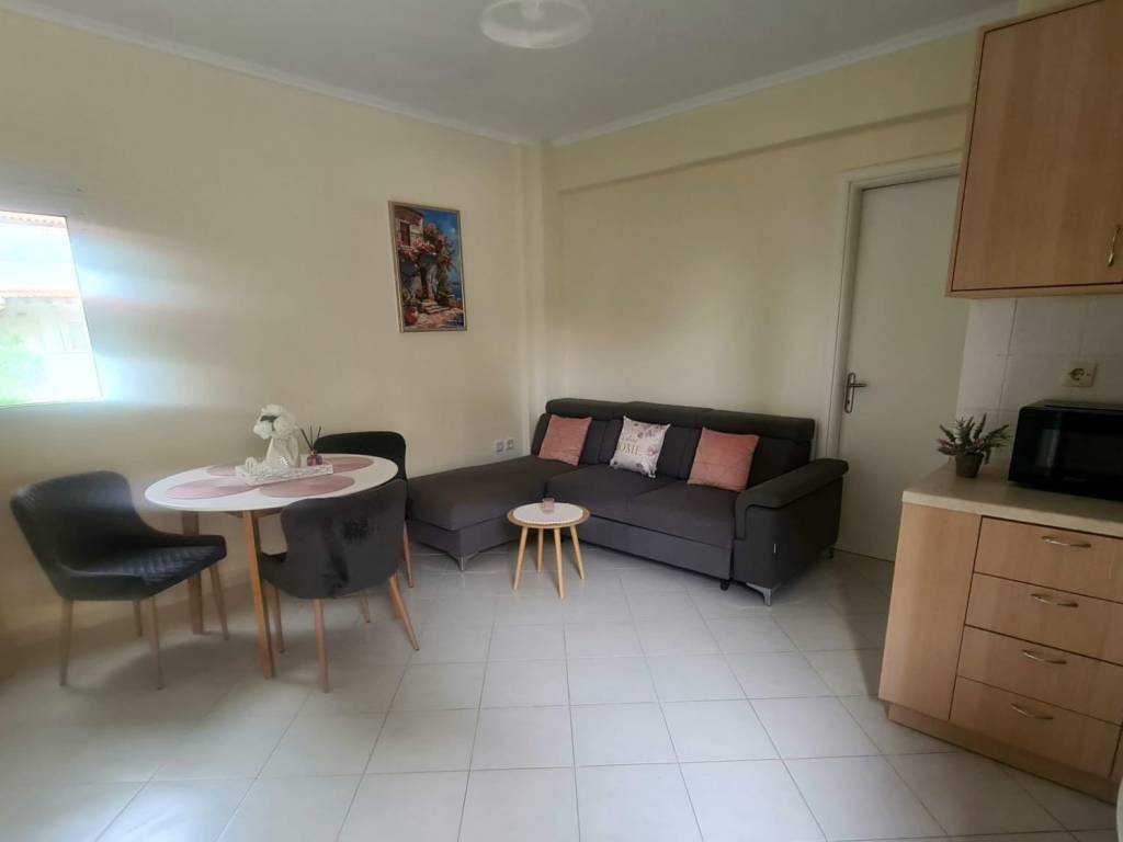 Nea Kallikratia, Halkidiki, Greece Apartment, 50 sqm, 1st floor (elevator no), 700m from the sandy beach. It consist of a living room, kitchen, 2 rooms, a bathroom and 2 balconies and shared garden. For sale with furniture.