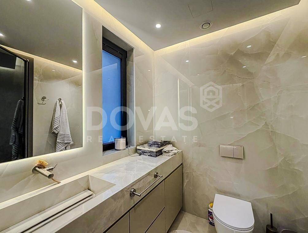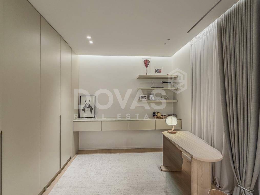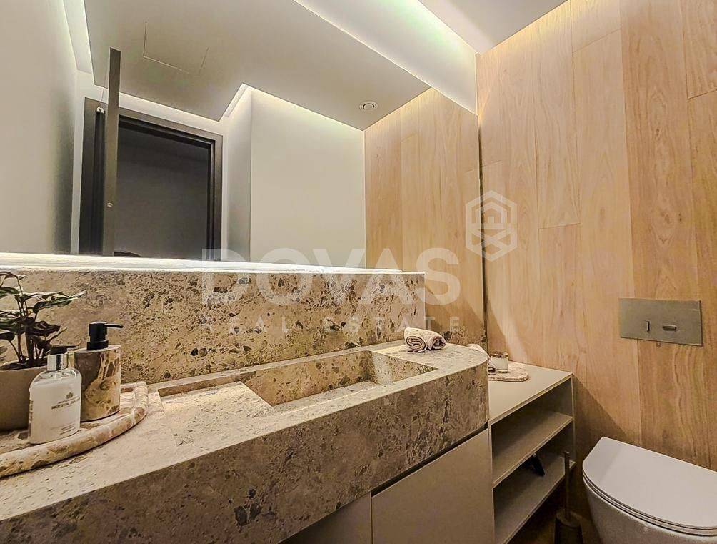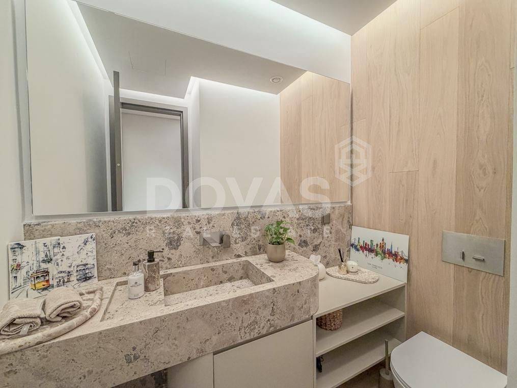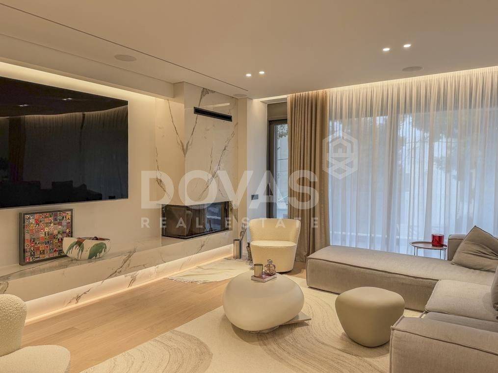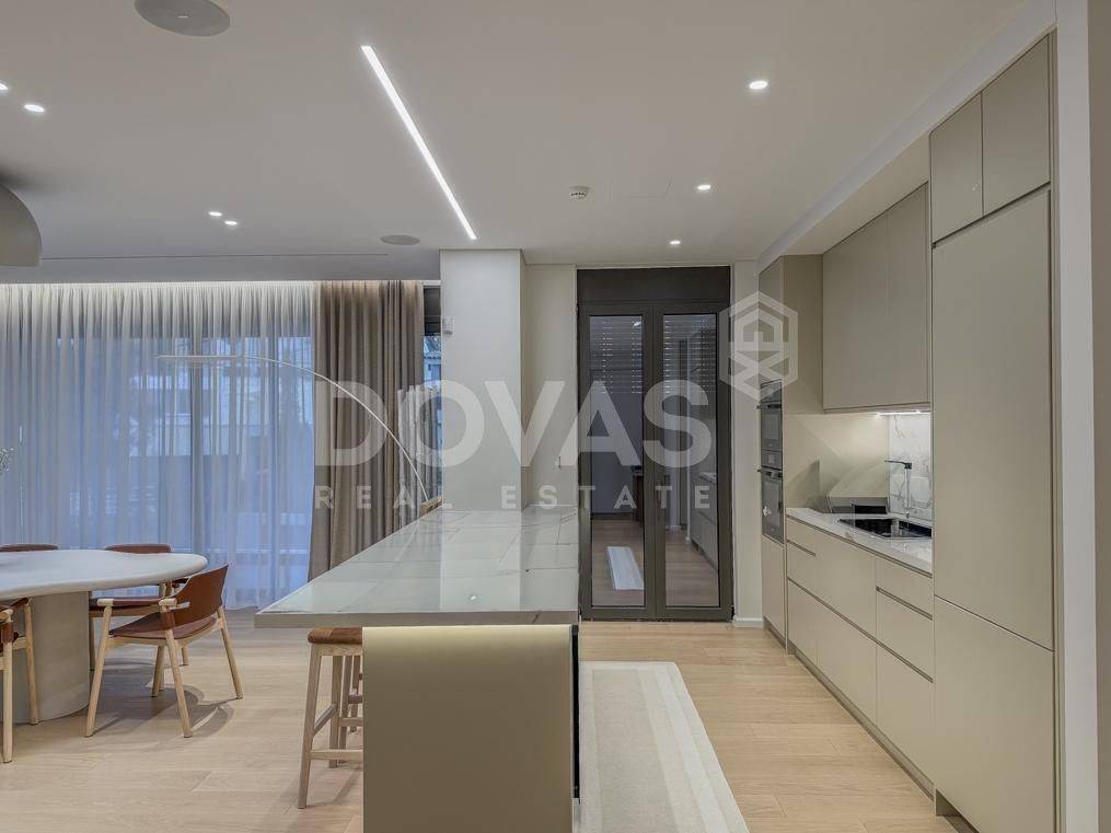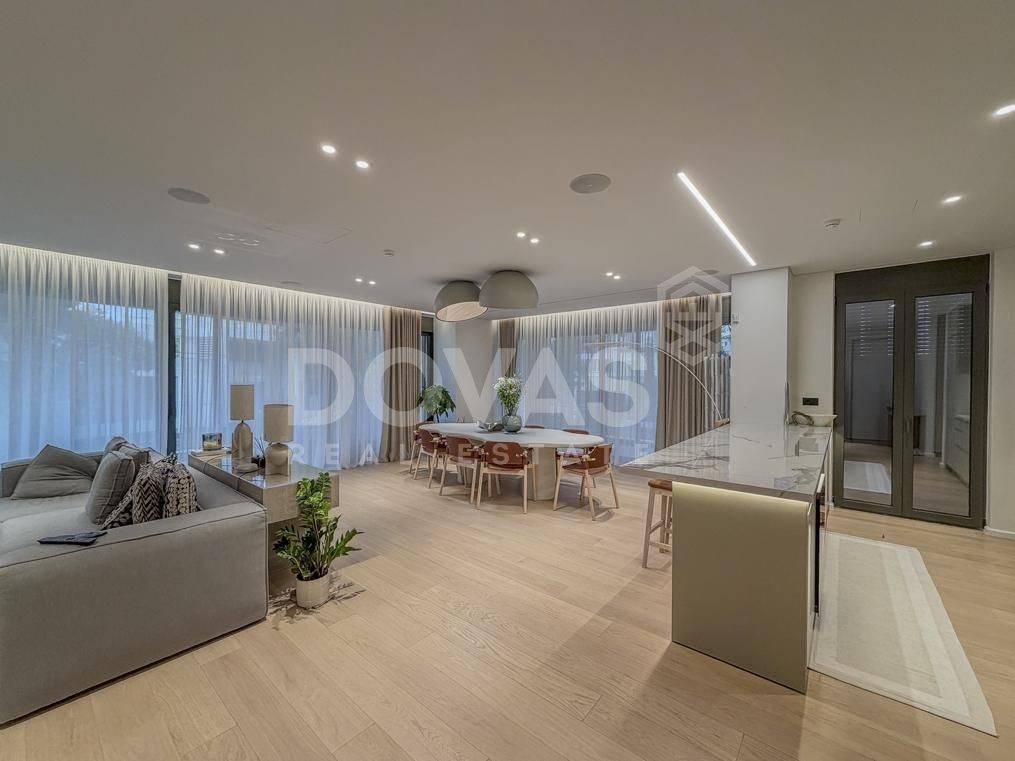 Nea Erythrea, Kastri - Floor Apartment 185sqm bedrooms 3, master bedroom, levels 1, 1st, newly built, year built 2024, energy class A++, living room, kitchen, 2 bathrooms, wc, heating type: autonomous (natural gas), air condition, a/c type vrv, parking covered,2, quiet, dual aspect apartment, luminous, corner, frontage, painted, drop ceiling, electric roller shutters, storage space, solar heater, external thermal insulation, fireplace, balconies, large balconies, elevator, built in appliances, aluminum frames, double glazed windows, door screen, wood floors, separate kitchen, office, night electricity discount rate, secure door, alarm, surveillance cameras, video doorbell, luxurious, under floor heating, gym, service room, residential zone, access from asphalt.
