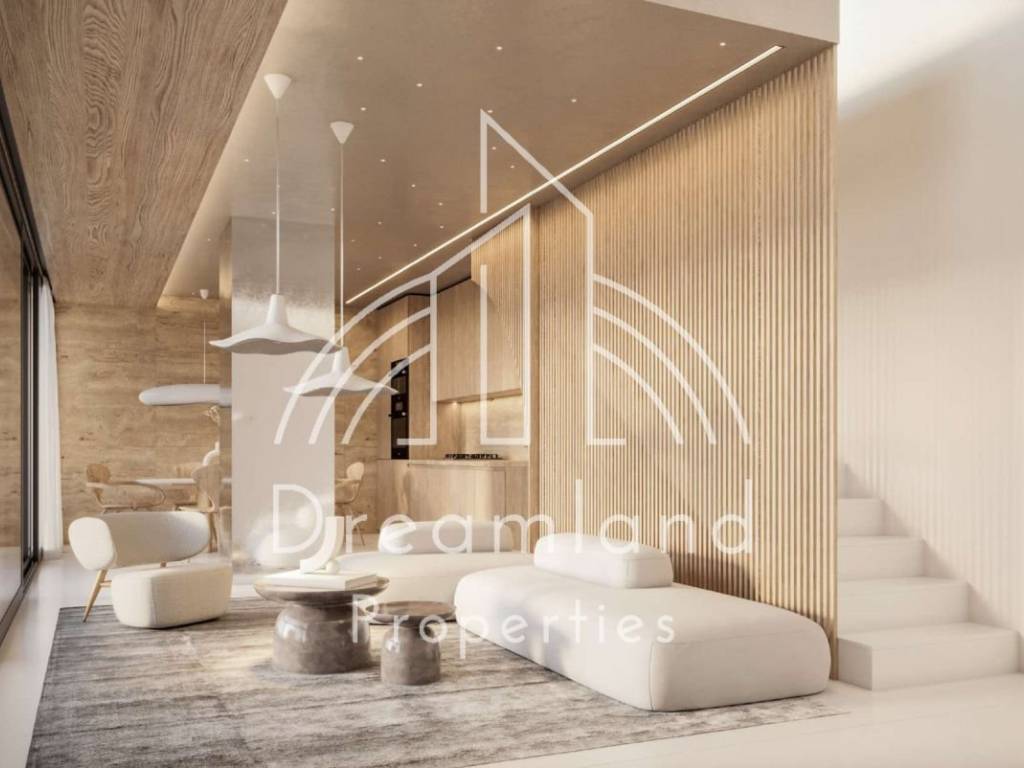 GLYFADA Pyrnari, Newly Built Luxurious Maisonette 131 sq.m., Basement - Ground Floor - 1st Floor, 2 Bedrooms (Option for 3rd), Open Plan Large Living Room - Kitchen, 2 Bathrooms, W.C., Autonomous Underfloor Heating with Heating Pump, Air Conditioning, Security Door, 1 Underground Parking Spot, Storage Unit, Private Garden and Swimming Pool, Internal Staircase, Aluminum Frames, Double Glazed Windows, Wooden Floors, Luxurious Construction, Minimal Aesthetics, Under Construction, Price 890.000 Euros (Listing code: 4571).