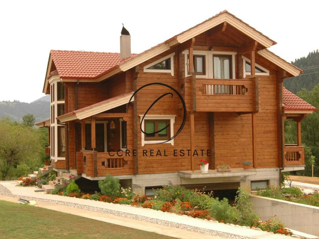 Detached house For sale, floor: Ground floor, 1st (2 Levels), in Karpenisi - Center. Α bioclimatic wooden detached house of Finnish construction, built in 2004, arranged over two levels with a semi-basement garage, with a total surface of 280 sq.m., set on a 4,000 sq.m. estate featuring a vineyard, aromatic plants, century-old oak trees, and a licensed water drilling system for irrigation. The property is in excellent condition, bright, airy, and enjoys a unique location with stunning, unobstructed views of the mountains and surrounding greenery, making it ideal as a holiday home. The main residence covers 200 sq.m. and consists of 5 bedrooms, a spacious living room with a fireplace unified with the dining area and kitchen, 2 bathrooms, and additional storage spaces. It is offered fully furnished and equipped with autonomous oil heating per level, a fire detection system, and an alarm system. It features aluminum window frames with double glazing, wooden floors, and an energy certificate rating of A. Additional features include a second living room, attic, internal staircase, storage room, insect screens, and a large landscaped garden. The property also offers 8 parking spaces in an underground area. It is located just 1,500 meters from the central square, 15 km from Velouchi ski center, and 20 km from Proussos, combining tranquility with convenient access. No communal fees. Price: €600.000. CCRE GROUP, contact phone: 2130223537, 6945072569, email: info@ccre.gr, website: www.ccre.gr