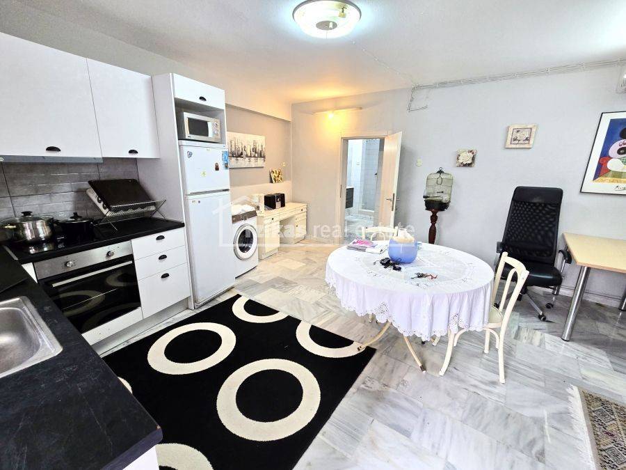 Property Code: 27557 - Apartment FOR RENT in Kalamaria Vizantio for € 470 . This 50.00 sq. m. furnished Apartment is on the Ground floor and features an open-plan kitchen/living room, bathroom . The property also boasts Heating system: Air conditioner, marble floor, Window frames: Aluminium, garden, A/C, electrical appliances. The building was constructed in 1980 . Building Energy Rating: E
