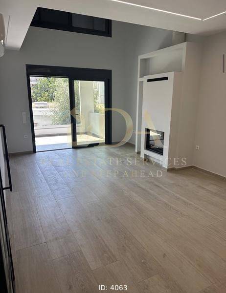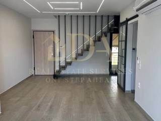 Elliniko, Ano Sourmena - Full floor Maisonette 121sqm bedrooms 3, levels 2, 1st - 2nd, year built 2013, energy class B+, living room, kitchen, 3 bathrooms, heating type: autonomous (heat pump), parking ground floor, quiet, dual aspect apartment, luminous, frontage, painted, electric roller shutters, storage space, solar heater, external thermal insulation, fireplace, balconies, large balconies, tents, elevator, thermal shut-off frames, double glazed windows, door screen, secure door, alarm, video doorbell, luxurious, internal staircase, pets allowed, residential zone.