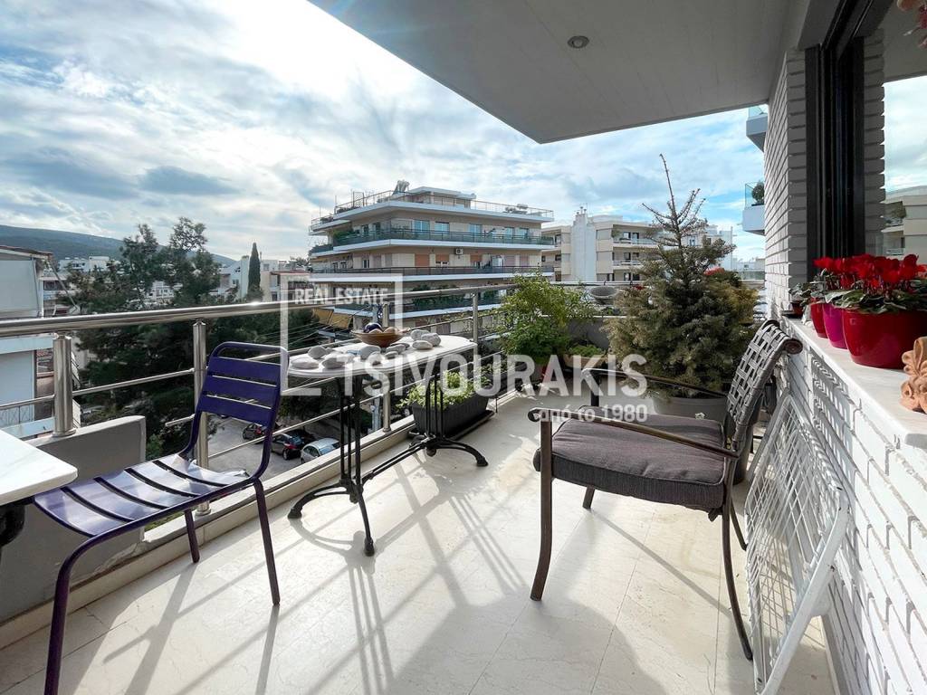 Ano Cholargos | 127 sq.m. Top-Floor Apartment on the 4th Floor with Breathtaking Views In a prime location of Ano Cholargos, at the foothills of Mount Hymettus and in immediate proximity to the area’s organized market, a 127 sq.m. top-floor apartment on the 4th floor is offered for sale, featuring unobstructed and impressive views of the mountain. This is a bright and welcoming residence that combines comfort, openness and solid construction quality, in one of the most consistently upgraded neighborhoods of Cholargos. The apartment is front-facing and features a large corner living and dining area that can be comfortably arranged into three distinct zones: dining area, main living room and a separate sitting area around the fireplace. The space is filled with natural light and opens directly onto the spacious front balcony, approximately 2 meters wide, offering open views of Mount Hymettus, a strong sense of openness and a clean, pleasant atmosphere. The kitchen is independent, spacious and functional, with room for a dining table for everyday family meals. In front of the kitchen there is a large square balcony, ideal for daily use and moments of relaxation. The property offers three bedrooms: a large master bedroom, a second bedroom that has become dual-space through the enclosure of a semi-outdoor area, and a third smaller bedroom, comfortably covering the needs of a family. There is a spacious bathroom with a bathtub, as well as a separate WC, large enough to accommodate additional storage furniture. Heating is autonomous with natural gas, ensuring low operating costs, while the apartment also features air conditioning, a security door and aluminum window frames with double glazing and insect screens, installed in 2024. A full renovation of the electrical and plumbing systems was carried out in 2010. The floors combine wood and marble, adding a timeless and elegant character to the residence. A key advantage of the property is the independent parking space, which can accommodate one vehicle and can also partially function as storage, while there is also the possibility to park a second car directly in front of the parking entrance. Shops, squares, parks, schools and public transportation are all within very close distance, offering everyday convenience and a high quality of life. The overall condition of the apartment, combined with its view, functionality and location, makes it an especially attractive option for a family seeking a stable, bright and high-quality home in a neighborhood ideal for creating lasting memories. Property Code: A068-SH12568A Price: €420,000 Tsivourakis Real Estate, Tel: +30 697 3820 443, +30 694 246 4446, email: realestate@tsivourakis.gr