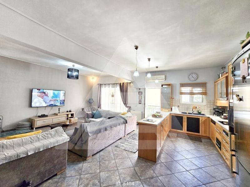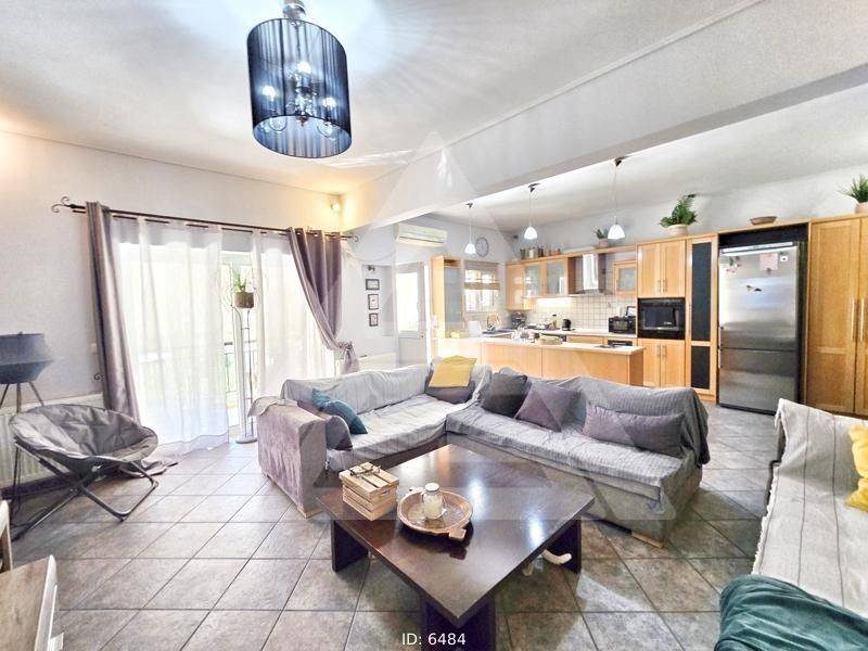 Elliniko, Agia Paraskevi - Floor Apartment 107sqm bedrooms 2, levels 1, 2nd, renovated, year built 1982, renovation year 2001, energy class D, living room, kitchen, bathroom, wc, heating type: autonomous (oil), air condition, quiet, dual aspect apartment, luminous, frontage, solar heater, fireplace, balconies, loft storage, private terrace, terrace 125sqm, built in appliances, aluminum frames, double glazed windows, door screen, ceramic tiles floors, without common charges, residential zone, eastern orientation, access from asphalt, price is negotiable, close to metro/train (up to 500m).