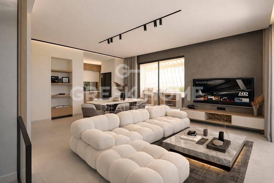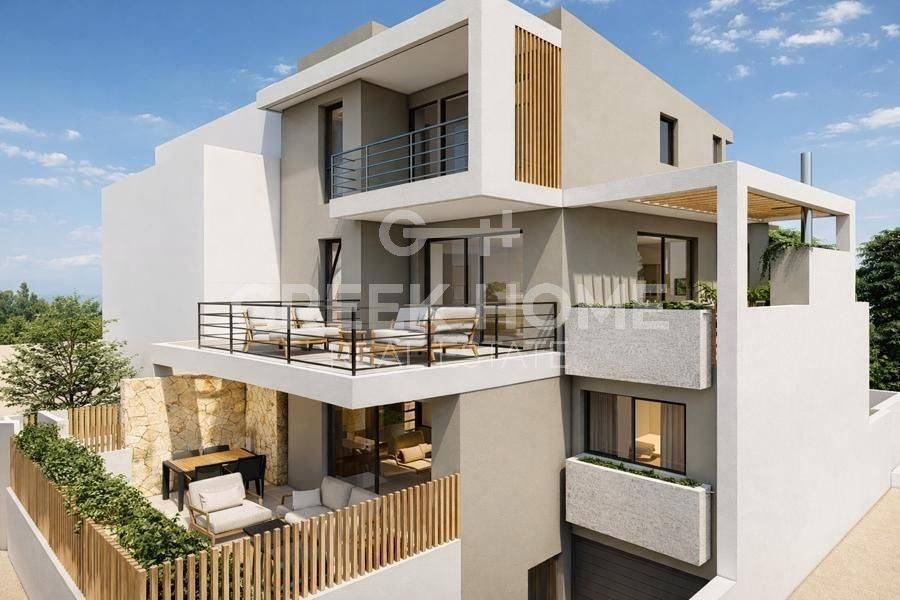 Gerakas, Mpalana - Full floor Maisonette 147sqm bedrooms 3, levels 2, 1st - attic, under construction, constructionstage concrete, year built 2024, energy class A, living room, hall, kitchen, 2 bathrooms, 2 wc, heating type: individual unit (heat pump), air condition, parking covered, quiet, dual aspect apartment, luminous, painted, drop ceiling, electric roller shutters, storage space, external thermal insulation, fireplace, balconies, large balconies, elevator, built in appliances, thermal shut-off frames, double glazed windows, door screen, ceramic tiles floors, handicap ramp, office, secure door, alarm, surveillance cameras, video doorbell, luxurious, under floor heating, internal staircase, playroom, cloakroom, service room, ev charger, satellite, internet, laundry room, investment property.