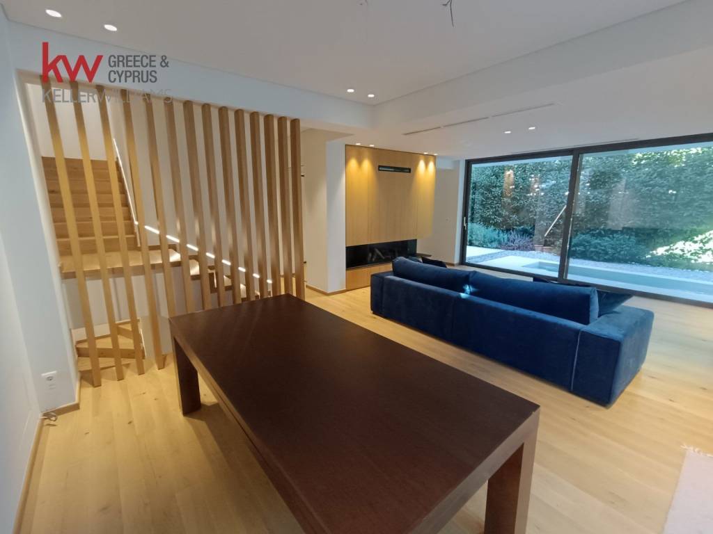 Maisonette, of excellent aesthetics and quality, for demanding clients, can offer you comfortable and luxurious living. This beautiful residence is the third vertical property of a luxurious complex of three maisonettes, in the most beautiful and quiet part of Varkiza, very close to the market and restaurants and only 700 m. from the sea. Its total area is 257 sq.m., on a plot of 233 sq.m., on three levels. On the ground floor (84 sq.m.), we find the living room and dining room, with a gas fireplace. The space is ornately decorated with glass to offer a unique view of the pool. On the same level is the separate kitchen, as well as a wc. On the first floor (77 sq m), we find the master bedroom with its en suite bathroom and a separate dressing room, which can potentially be used as a bedroom, depending on the needs of the new owner. The level is completed by another bedroom and another bathroom. On the upper floor we are led to a roof that externally has a wonderful large terrace with a beautiful open view of greenery and impressive neighboring houses. Finally, the basement of the house (74 sq m) is a warm and beautiful space, with natural lighting cour anglais, ideal for an office, playroom, guest room or even a second living room. On the same level there is also a large separate storage room and a bathroom. The house is surrounded by a beautiful garden and a specially designed swimming pool, while it also has two parking spaces in a closed garage. The maisonette has smart home technology. It has a heat pump with underfloor heating and fun coil for cooling, aluminum frames, double glazing, advanced security system and an internal elevator that connects all levels. Privacy, quality, comfort, safety and luxury are ideally combined in this unique residence! The price is negotiable. KW Athens Riviera, Contact Phone: 2103007281, email: kwar@kwgreece.gr
