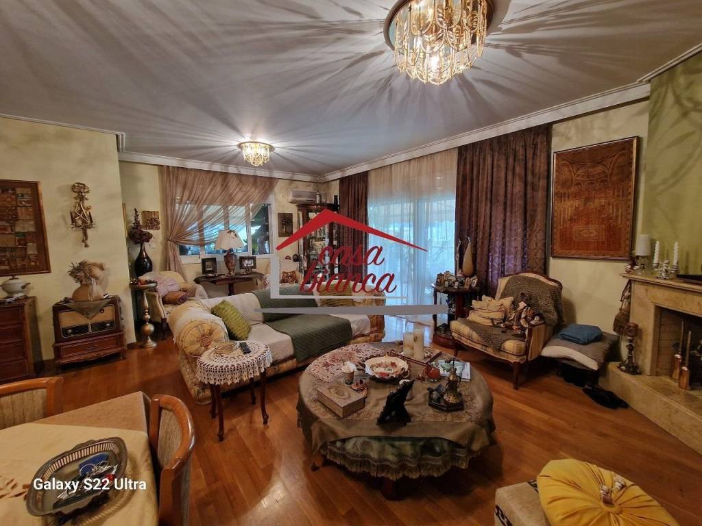 A, N/A 126 sq.m., 3rd floor, luxurious, at residential area, year of construction 2001, kali, 3 b/r, living room, fireplace, bathroom, 1 WC, kitchen, double-sided, front facing, bright, corner, solar panel, with energy class E, with floor type n/a, with aloyminioy joinery, double glass pane, double glazing, awnings, pest net, elevator, door tv, security door, alarm, veranda, pets allowed, garden, closed garage, price 570.000€, code 4606