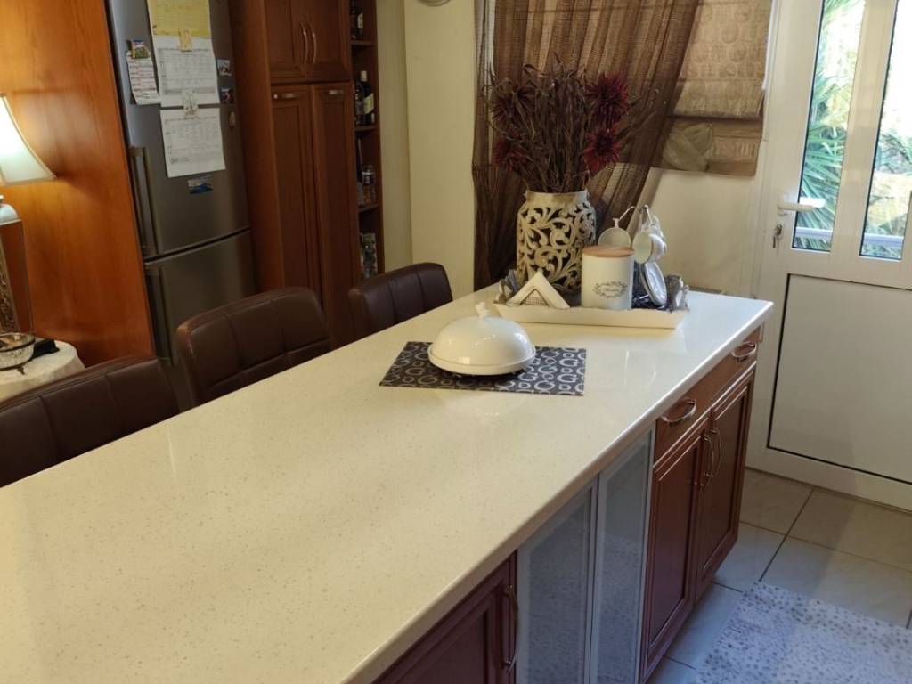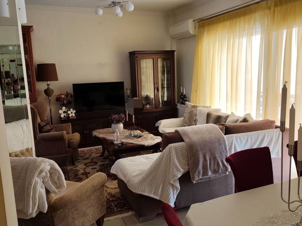 Πωλείται 5αρι οροφοδιαμέρισμα 135 τ.μ. στο κέντρο της πόλης ιδανικό για οικογένεια με τρία παιδιά. Κοντά σε super market, Δημαρχείο, Σχολεία, Αθλητικούς χώρους. Το διαμέρισμα είναι πλήρως ανακαινισμένο με τέσσερα υπνοδωμάτια όλα με δικό τους καινούριο aircondition Toyotomi inverter, ντουλάπα, γραφεία 12 τ.μ. το καθένα. Διαθέτει επίσης δύο μπάνια, πλήρως ανακαινισμένα και ένα μεγάλο Laundry room με πολύ μεγάλη ντουλάπα και θέσεις για πλυντήριο και στεγνωτηριο (φωτό). Μεγάλο σαλόνι-καθιστικό με έπιπλο με ξύλο τριανταφυλλιάς και κουζίνα με όλες τις ηλεκτρικές συσκευές από μασιφ καρυδιά με νησίδα στην μέση και με Aircondition 18.000 btu inverter. Σε προνομιακή θέση με θέα, με μεγάλες βεράντες στις τρεις πλευρές του κτηρίου. Μαζί με το διαμέρισμα μέσα στην τιμή, δίνεται και μεγάλο πάρκινγκ-αποθηκευτικο χώρο 50 τ.μ. ΚΑΙ ένα δώμα 15 τ.μ. που γίνεται κανονικό δωμάτιο στην ταράτσα, η οποία ανήκει στο διαμέρισμα (αέρας). Στην ταράτσα έχει γίνει πλήρης μόνωση για υγρασία και θερμοκρασία και στους εξωτερικούς τοίχους των Βεραντών έχει θερμομόνωση και καινούριες τέντες. Αυτονομη Θέρμανση με φυσικό αέριο και ηλιακός θερμοσίφωνας. Το κτήριο είναι άδειας 1972 και η τιμή είναι 140.000 ευρώ.