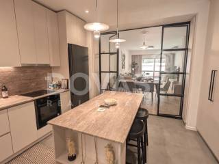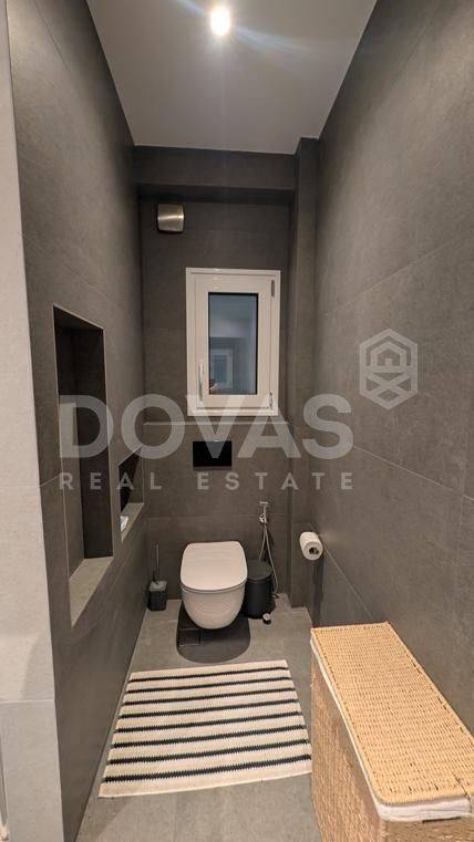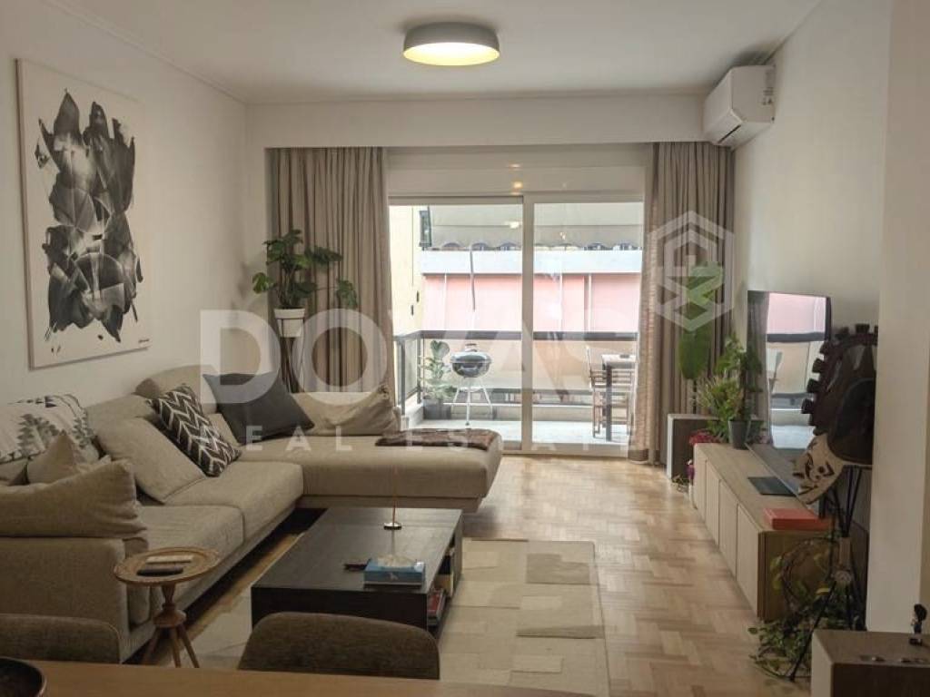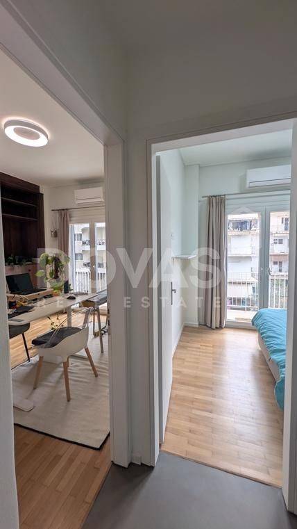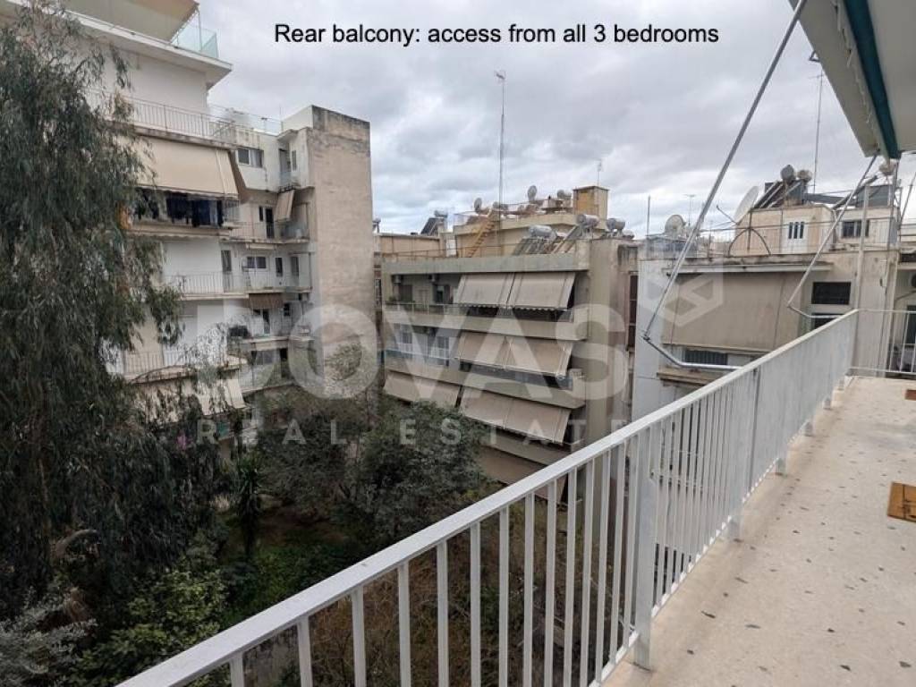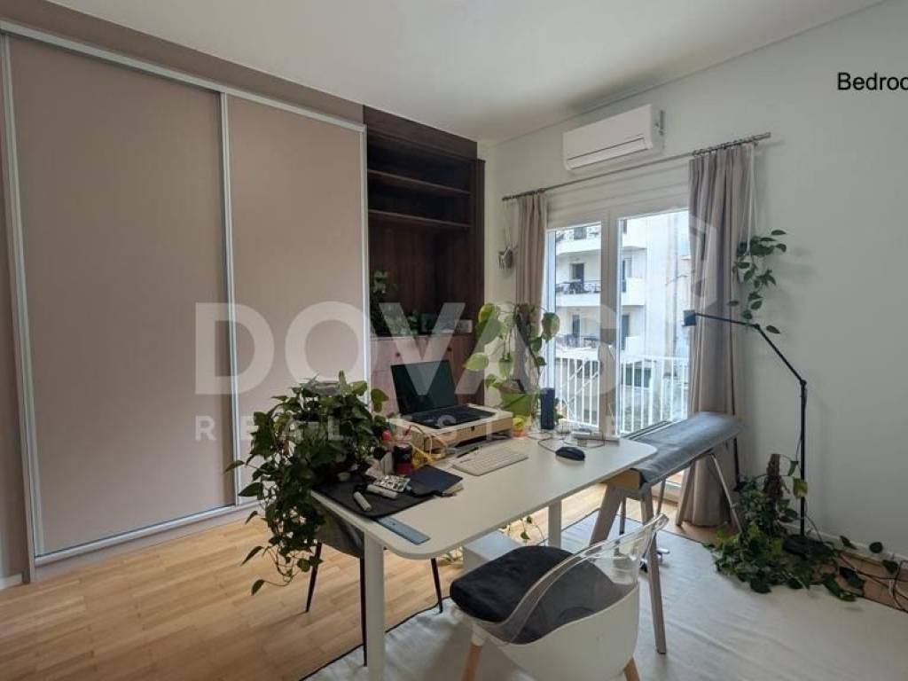 PAGKRATI, Alsos Pagkratiou – For sale [EXCLUSIVELY by Dovas Real Estate] a bright, dual-aspect apartment of 147 sq.m. on the 3rd floor of a well-maintained 1969 building, fully renovated in January 2026 with high-quality materials, including 1 parking space. The property comprises 4 bedrooms (or 3 bedrooms plus a gym area, as currently configured), a spacious living room with an open-plan kitchen that can be separated with glass partitions, 2 bathrooms, an external storage room of 5 sq.m., and a large ground-floor parking space, with the option for guest parking. At the front, there is a balcony with storage space and partial views of the Acropolis, making the apartment particularly bright. At the rear, a large, sun-filled balcony is accessible from three bedrooms, overlooking an open and green courtyard. The apartment features autonomous heating via infrared panels, a solar water heating system, brand-new air conditioning units in every room, aluminum window frames with double glazing, and elegant herringbone wood flooring with eco-friendly varnish, along with microcement finishes in the kitchen and utility areas. Additional features include built-in Neff appliances, travertine stone kitchen countertops, marble and granite finishes in the bathrooms, awnings, a security door, an elevator, 3-meter ceiling heights, eco-friendly wall paints, pre-installation for battery storage systems, and the option to be sold furnished or unfurnished. Ideally located in the heart of Pagkrati, just steps from Alsos Pagkratiou and Mesolongiou Square, and within a 10-minute walk to Kolonaki and the “Evangelismos” metro station, offering easy access to public transport, shops, restaurants, and entertainment venues.