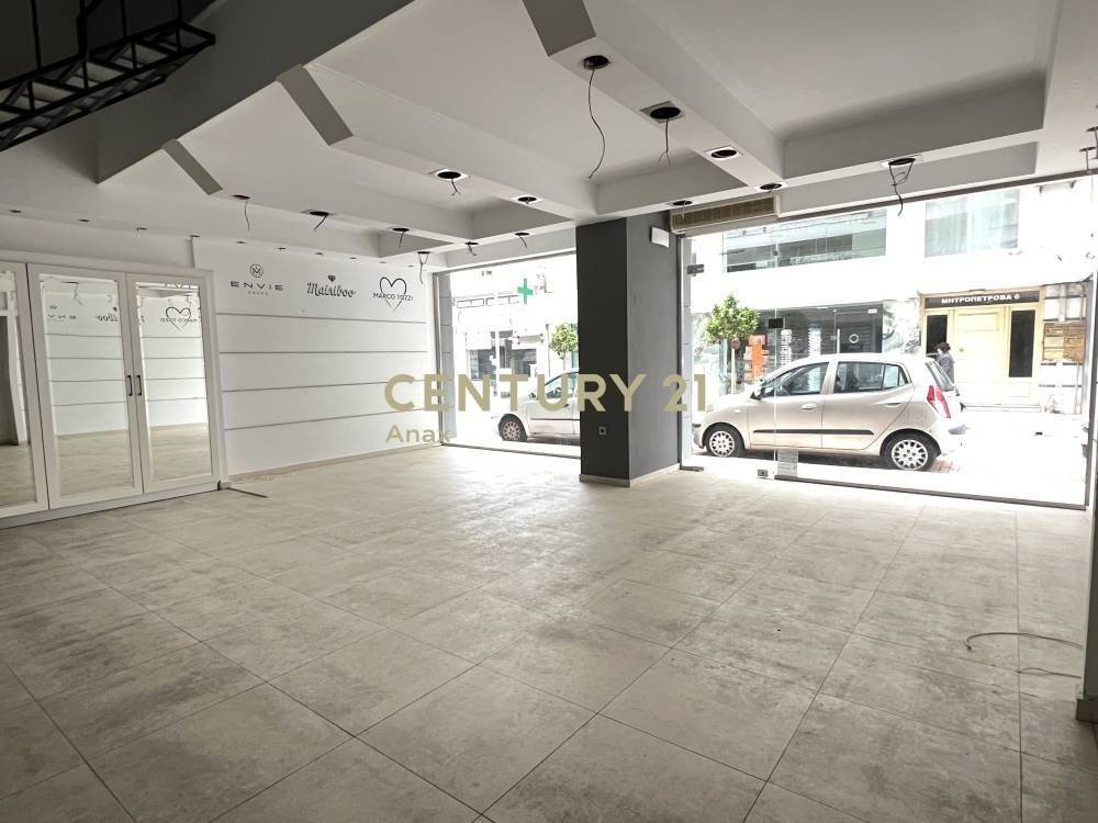 Το ισόγειο κατάστημα διαθέτει επιφάνεια περίπου 75 τ.μ., πρόσοψη 7,5 μέτρων και δύο μεγάλες βιτρίνες, εξασφαλίζοντας πολύ υψηλή εμπορική προβολή και άριστη φυσική φωτεινότητα. Ο κύριος χώρος είναι ενιαίος, με δάπεδο από πλακάκι, και δημιουργεί ένα καθαρό, σύγχρονο και ευέλικτο περιβάλλον, κατάλληλο για λιανική, showroom, γραφείο εξυπηρέτησης ή επαγγελματική στέγη υψηλών απαιτήσεων.