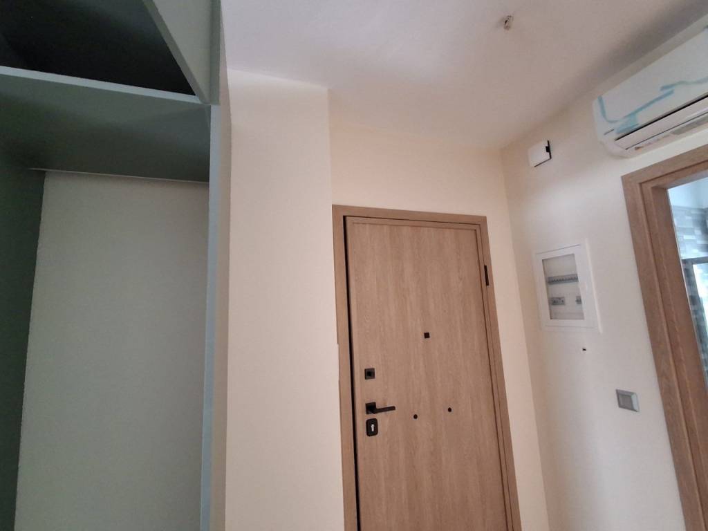 For rent: New-build 40 sq.m. 1st-floor apartment. The property consists of one bedroom, a living room-kitchen area, and a bathroom. It is equipped with an electric stove, refrigerator, wardrobe, and one air conditioning unit. -Type: 1-Bedroom Apartment -Surface: 40 sq.m. -Floor: 1st -Condition: Newly built -Equipment: Electrical appliances, 1 A/C -Property Code: 12304 -Price: 600€