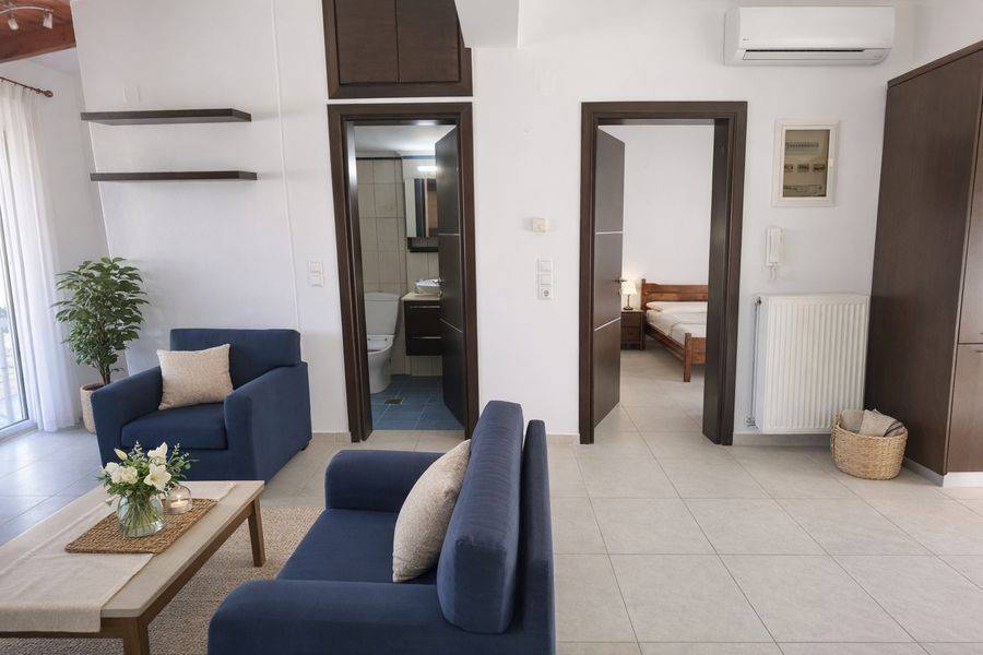 Irakleio, Therissos, Apartment For Rent, 60 sq.m., Floor: 4th, 1 Bedrooms 1 Kitchen(s), 1 Bathroom(s), Heating: Autonomous, Energy Certificate: B, Floor type: Tiles, Type of door frames: Aluminum, Features: Elevator, Fireplace, Electric Appliances, Double Glazed Windows, Balconies, Furnished, Bright, AirConditioning, Renovated, Price: 650€. SPITI 4 ALL REAL ESTATE, Tel: 2814011196, email: spiti4all@gmail.com