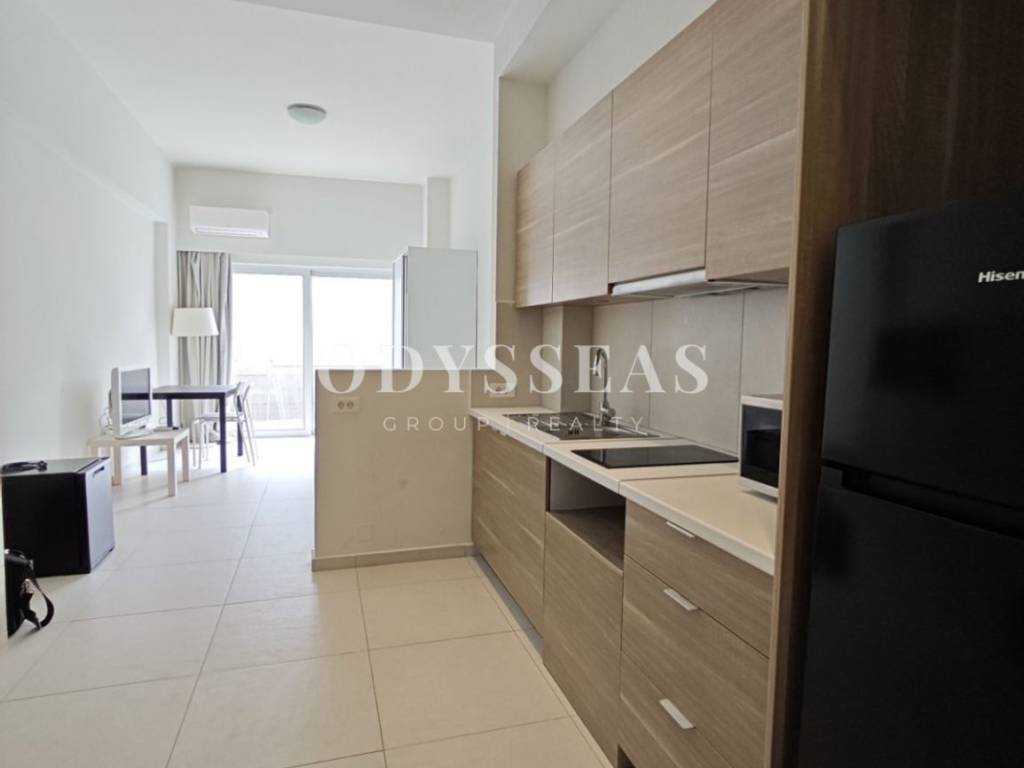 For Rent: In the center of Heraklion, Crete, a fully furnished studio apartment on the 1st floor, renovated in 2024, with a total area of 35 sq.m. Modern and bright, the property features one bedroom, an open-plan living room with kitchen, a bathroom, and W/C. It offers all the necessary amenities for comfortable everyday living, including heating, air conditioning (A/C), aluminum window frames with double glazing and insect screens, tiled flooring, and a fully equipped kitchen with electrical appliances. It also enjoys an open horizon view. An ideal choice for those seeking a functional, modern, and comfortable home in the heart of the city. Odysseas Group Realty