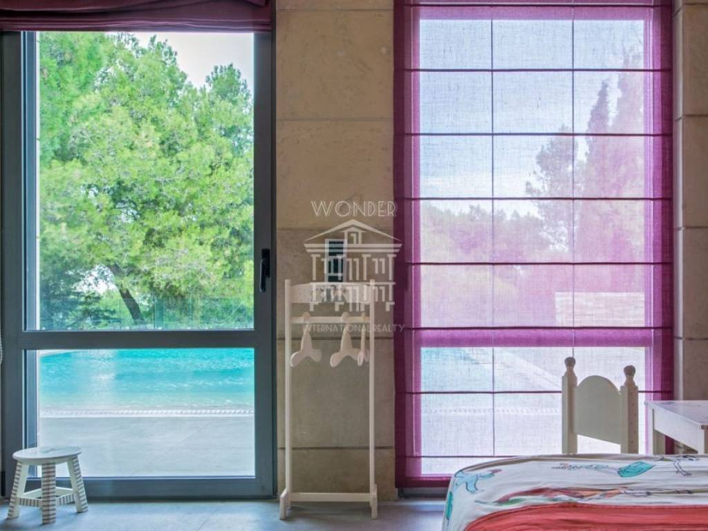 Nestled within an exceptional natural setting, where lush pine forest blends seamlessly with the deep blue of the sea, this remarkable villa offers a lifestyle defined by elegance, privacy, and contemporary design. Thoughtfully designed down to the finest detail, the residence accommodates up to nine guests across five spacious bedrooms. Two expansive living areas provide the perfect balance between relaxed everyday living and sophisticated entertaining. The upper level features a light-filled open-plan living and dining space with a fireplace, opening onto breathtaking, unobstructed sea views. A fully equipped, high-end kitchen integrates harmoniously into the space, while the generous terrace invites outdoor dining and tranquil moments overlooking stunning sunsets. The master bedroom serves as a private retreat, complete with a luxurious marble en suite bathroom and serene views over the surrounding pine landscape. On the garden level, three additional bedrooms and an elegant junior suite with private facilities are complemented by a cozy library lounge, all with direct access to the outdoor areas. An independent executive suite with its own private entrance offers an ideal solution for guests seeking autonomy and discretion. Outdoors, the property unfolds into a beautifully landscaped environment featuring a 100 sq.m. infinity pool, refined lounging areas, and stylish outdoor dining spaces—creating an atmosphere of effortless Mediterranean luxury. Ideally located, the villa combines tranquility with convenience: Walking distance to the beach Short drive to Porto Rafti Approximately 20 minutes from Athens International Airport Less than one hour from central Athens A rare opportunity to acquire a distinguished residence in one of Attica’s most sought-after coastal settings.