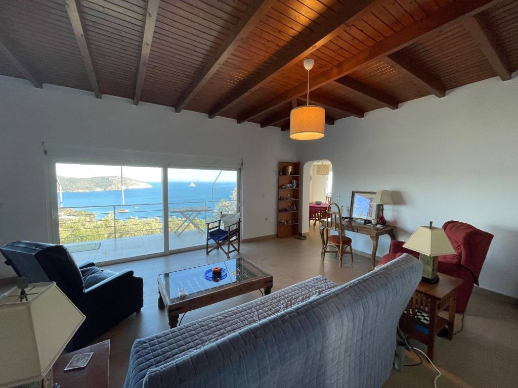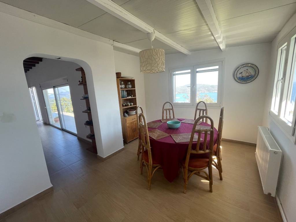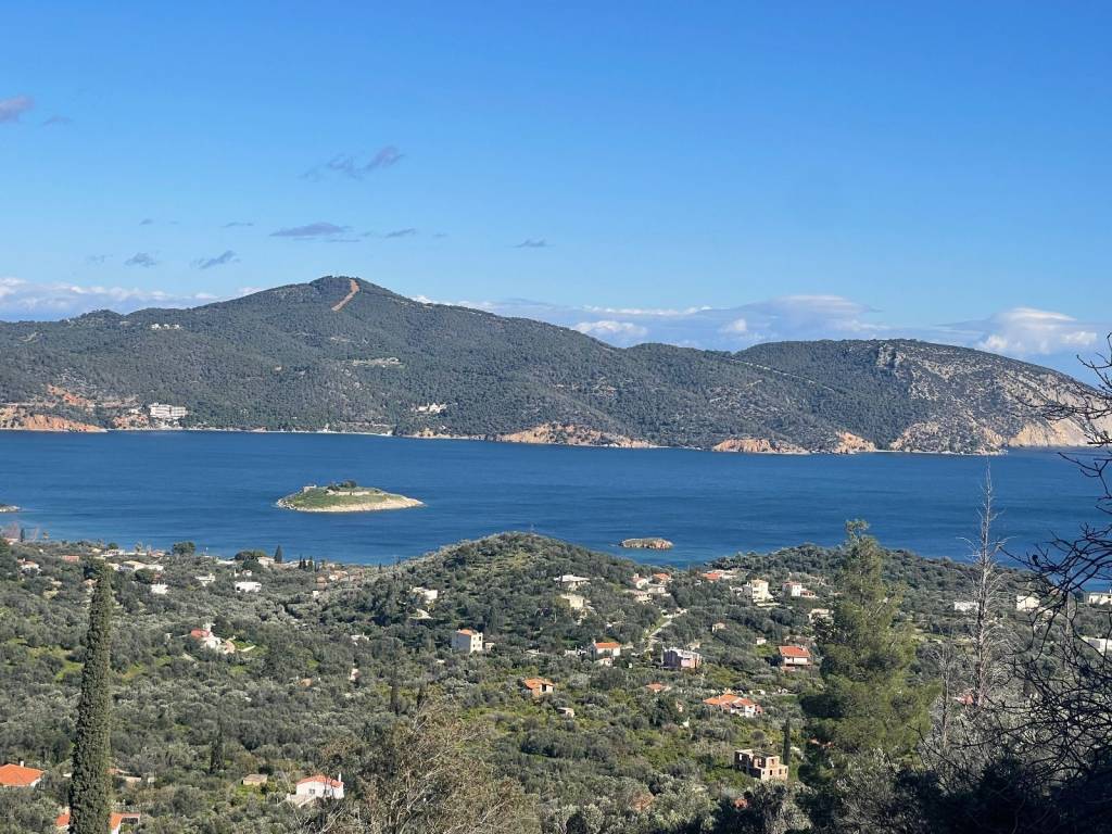 FOR SALE POROS AREA - PELOPONNESE - EXCLUSIVE. House with amazing panoramic sea views surrounded by pristine Mediterranean nature and old olive trees. The house is 120 m2 wide and consists of spacious living area with unobstructed sea view, dining room with beautiful sea and mountain views, equipped kitchen, 2 comfortable, sunny double bedrooms facing the back garden and 1 single bedroom, 1 bathroom and 1 wc. Balcony, terrace, storage in basement. Land of 10.000 m2 with 200 olive trees producing 1,5 tons of extra virgin olive oil. Own water drill. There is enough space to add a pool and any kind of landscaping. Easy access from asphalt road - parking space right at the back of the house. At 15 minutes from Galatas town and Poros island. A selection of beaches at 5 to 10 minutes drive. Many places to visit at close distances : Hydra island in 20 minutes, Porto Cheli at 50 minutes, Nafplio at 1 hour, Methana spa town and Vathy fishing village at 30 minutes and many more. Only 2,5 hours drive from Athens International Airport. Price 550.000 euros. Ref.number #860.