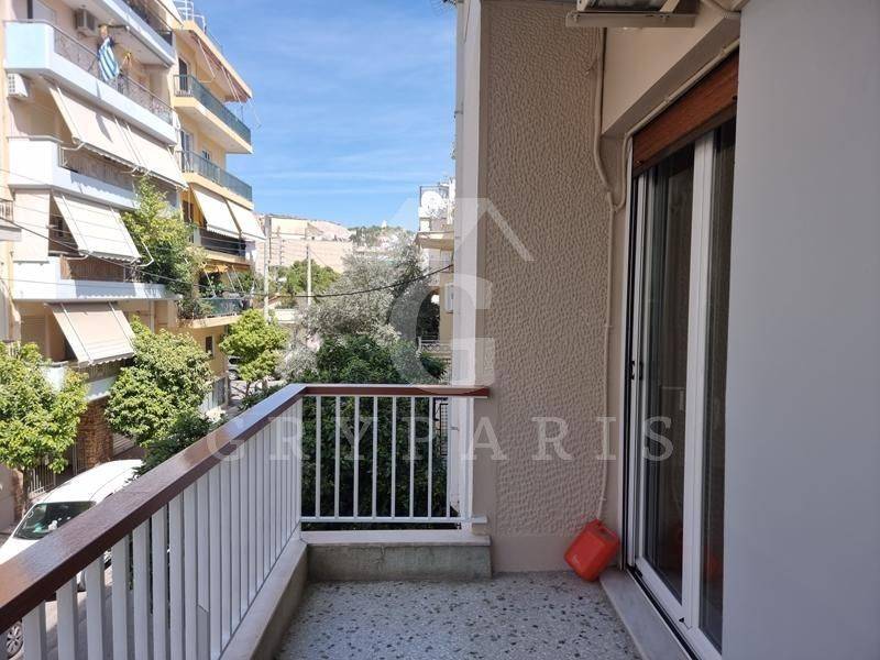 Kallithea (Attica - Southern Suburbs), Lofos Sikelias - Apartment 93sqm electrical appliances furnished, bedrooms 2, levels 1, raised 1st, excellent condition, year built 1976, renovation year 2020, energy class F, living room, hall, kitchen, bathroom, heating type: central (oil), air condition, quiet, dual aspect apartment, luminous, frontage, painted, storage space, solar heater, balcony 8sqm, tents, elevator, loft storage, built in appliances, aluminum frames, double glazed windows, wood & mosaic floors, separate kitchen, night electricity discount rate, secure door, video doorbell, laundry room, within city plan, residential zone, access from asphalt, close to school (up to 200m), close to sports facilities (up to 100m), close to bus stop (up to 100m), close to market (up to 200m), close to square (up to 200m), close to super market (up to 200m).