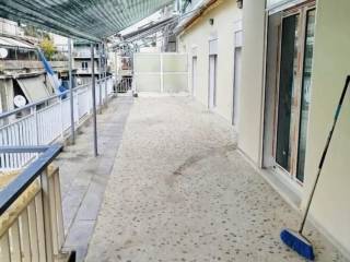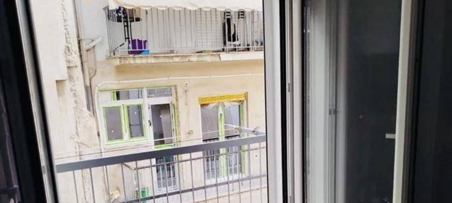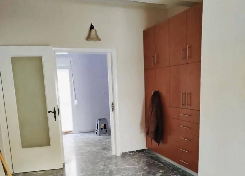 Piraeus, Evaggelistria - Apartment 110sqm bedrooms 2, levels 1, 5th, partly renovated, year built 1978, renovation year 2026, energy class C, living room, hall, kitchen, bathroom, wc, heating type: central (oil), air condition, quiet, dual aspect apartment, luminous, unobstructed view view, frontage, painted, solar heater, large balconies, tents, elevator, loft storage, aluminum frames, double glazed windows, door screen, wood & marble floors, separate kitchen, residential zone.