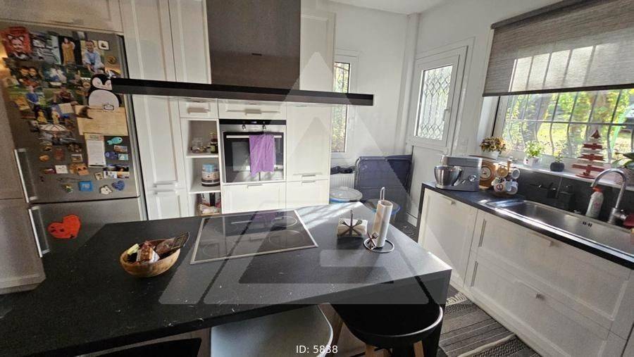 Ekali (Attica - Northern Suburbs) - Detached House 205sqm plot 1296sqm, electrical appliances furnished, bedrooms 4, levels 2, ground floor (50sqm) - raised 1st (155sqm), renovated, year built 1985, renovation year 2013, energy class C, 2 living rooms, hall, 2 kitchens, 2 bathrooms, wc, heating type: autonomous (electricity), air condition, parking open space+covered, quiet, dual aspect apartment, luminous, frontage, painted, storage space, fireplace, balconies, large balconies, loft storage, garden, private terrace, aluminum frames, double glazed windows, door screen, wood & tile floors, separate kitchen, office, without common charges, three phase electricity, night electricity discount rate, secure door, alarm, surveillance cameras, luxurious, pets allowed, within city plan, residential zone, north-western orientation, access from asphalt, price is negotiable.