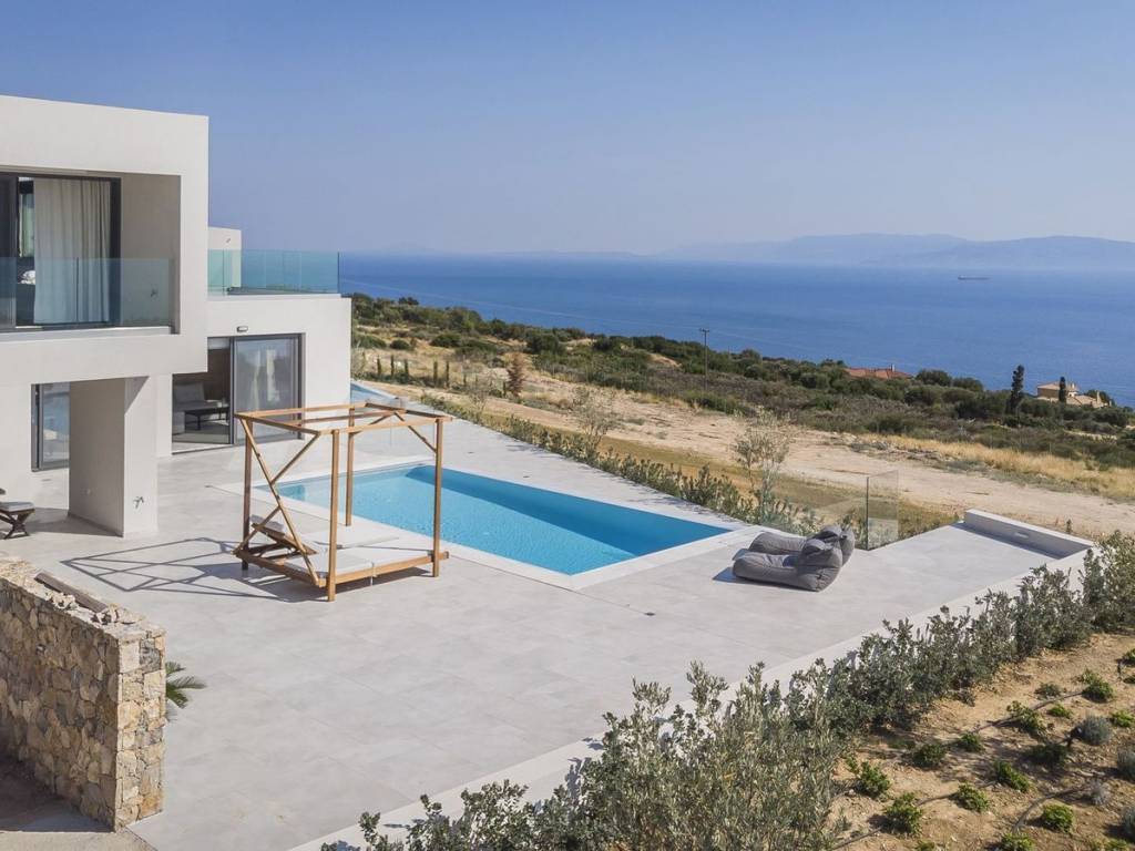 A three-story villa with a master bedroom and jacuzzi on the upper floor, kitchen-living area on the ground floor, and two bedrooms with garden access on the lower level. The adjacent two-level studio offers either an independent entrance or a connection to the villa, hosting a living room, bathroom, and kitchenette on the ground floor, and a bedroom upstairs. Like the main villa, it features a fully equipped kitchen, air conditioning, hot water, and a 32 sq.m. swimming pool. Every detail has been designed to create an atmosphere of serenity and luxury. Telchines is not just a residence—it is a place where memories come alive, nature embraces your life, and everyday routines turn into a permanent holiday. A unique investment in lifestyle, tranquility, and long-term value. Kefalonia, the largest of the Ionian Islands, is renowned for its breathtaking landscapes, picturesque villages, and world-famous beaches, combining natural beauty, tranquility, and authentic Greek character—an ideal destination for holidays or boutique property investments. The location of “Agios Georgios” in Plateies offers a peaceful and genuine summer atmosphere, with green hills and easy access to crystal-clear beaches. Von Poll Greece provides full support throughout the property purchase process. Beyond real estate expertise, we work with a trusted network of legal advisors, notaries, tax consultants, and architects, guiding buyers step-by-step from initial search to final handover, ensuring a smooth and secure experience.