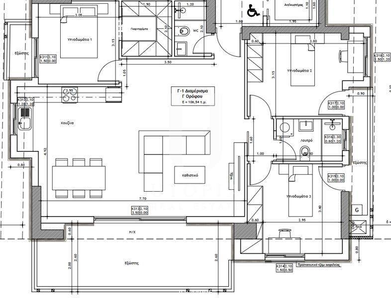 Holargos - Apartment 106sqm bedrooms 3, levels 1, 3rd, under construction, year built 2026, energy class A+, living room, kitchen, bathroom, wc, heating type: individual unit (natural gas), air condition, parking, quiet, luminous, unobstructed view view, frontage, storage space, external thermal insulation, balconies, elevator, thermal shut-off frames, double glazed windows, door screen, wood & tile floors, secure door, alarm, video doorbell, residential zone, eastern orientation, close to super market (up to 100m), close to metro/train (up to 200m), close to square (up to 100m), close to attiki odos (up to 3000m).