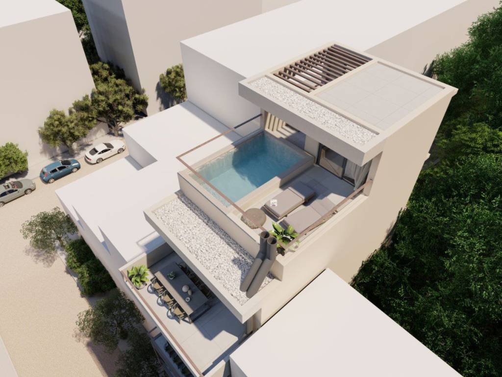 Οικόπεδο 100 τ.μ. στη Νέα Σμύρνη. Με άδεια οικοδομής 240 μέτρα. Το ακίνητο βρίσκεται σε απόσταση 20 λεπτών με τα πόδια από την πλατεία Νέας Σμύρνης. Η άδεια αφορά: Υπόγειο: 3 Αποθήκες. Ισόγειο: 2 θέσεις πάρκινγκ. 1ος: 45 τ.μ. οροφοδιαμέρισμα. 2ος και 3ος: μεζονέτα 90 τ.μ. 4ος, 5ος, 6ος: (45+45+15)= 105 τ.μ. Στη μεζονέτα 105 ανήκει και η πισίνα. Τιμή: 260.000
